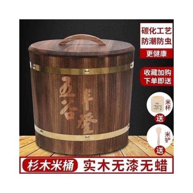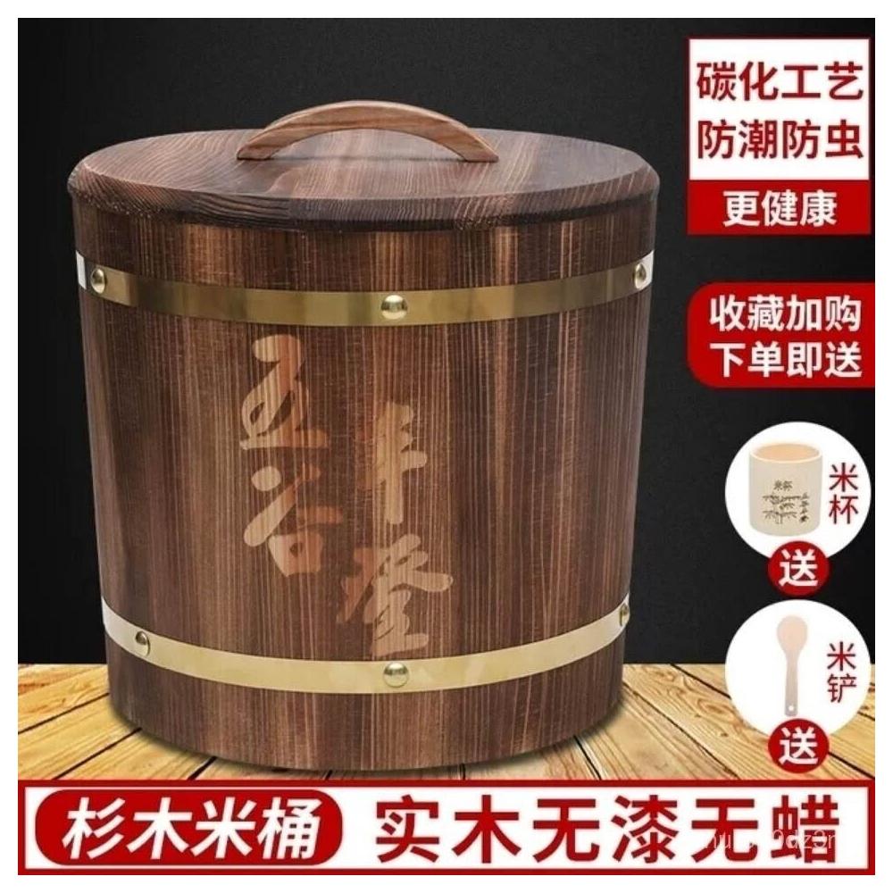 工廠直銷免運實木米桶家用儲米箱裝米桶10斤20斤30斤防潮防蟲米缸帶蓋老式木桶 AHIJ