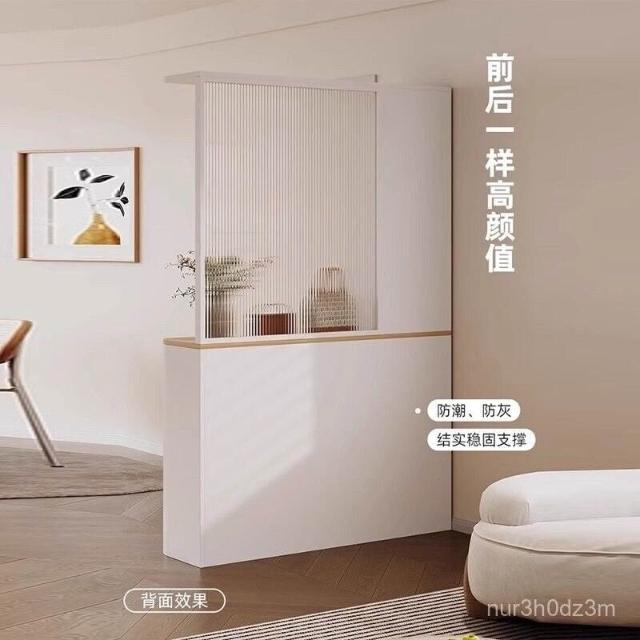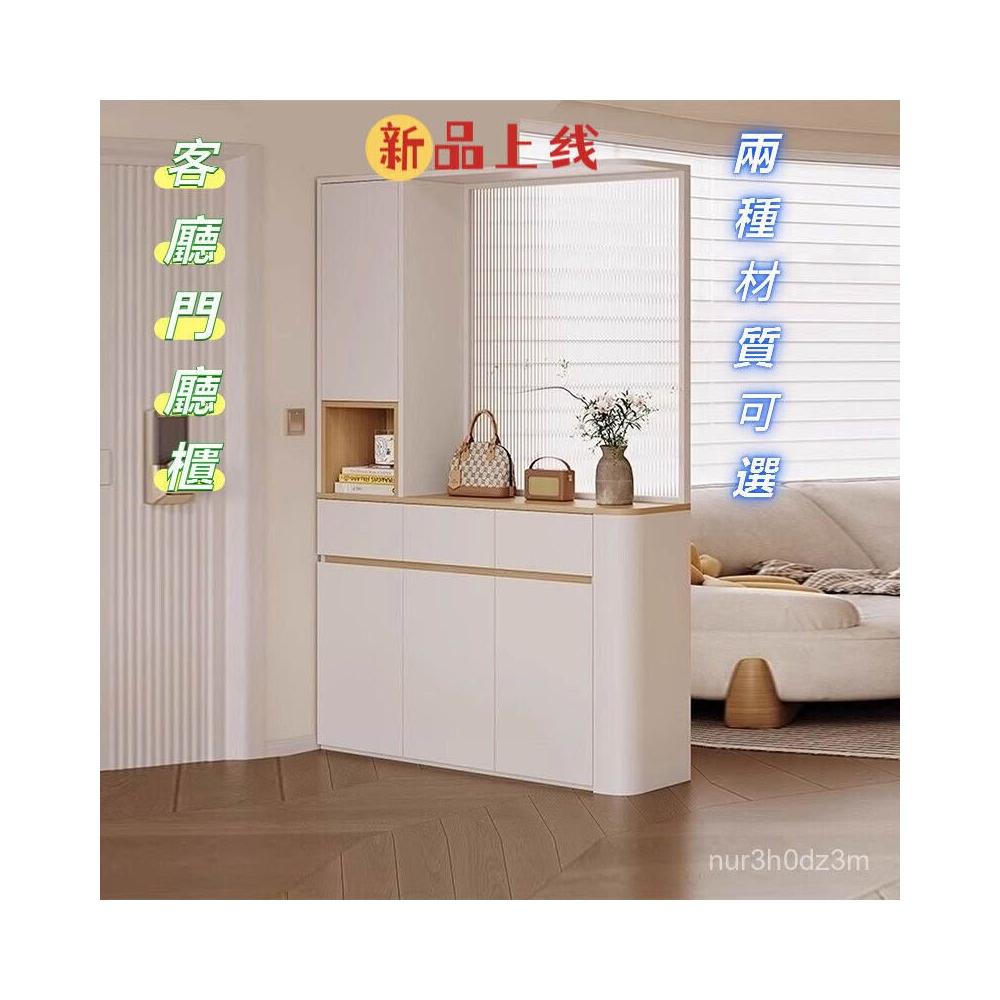 ~奶油風圓弧玄關櫃鞋櫃家用門口隔斷櫃一體玻璃屏風入戶屏風櫃定製 61IX