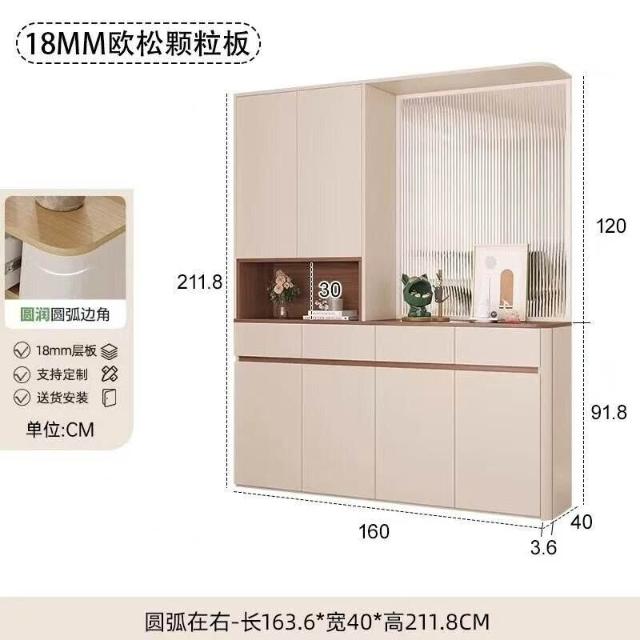 ~奶油風圓弧玄關櫃鞋櫃家用門口隔斷櫃一體玻璃屏風入戶屏風櫃定製 61IX