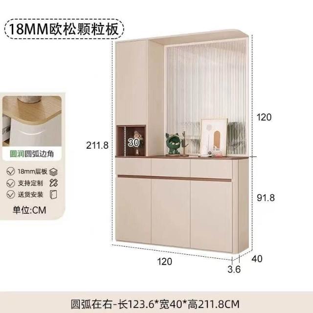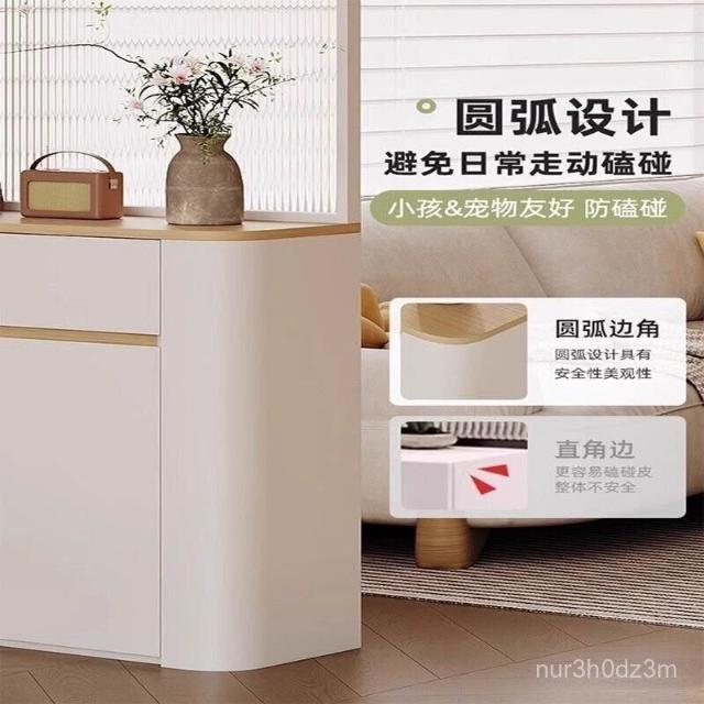~奶油風圓弧玄關櫃鞋櫃家用門口隔斷櫃一體玻璃屏風入戶屏風櫃定製 61IX