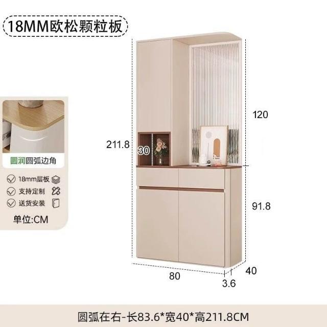 ~奶油風圓弧玄關櫃鞋櫃家用門口隔斷櫃一體玻璃屏風入戶屏風櫃定製 61IX