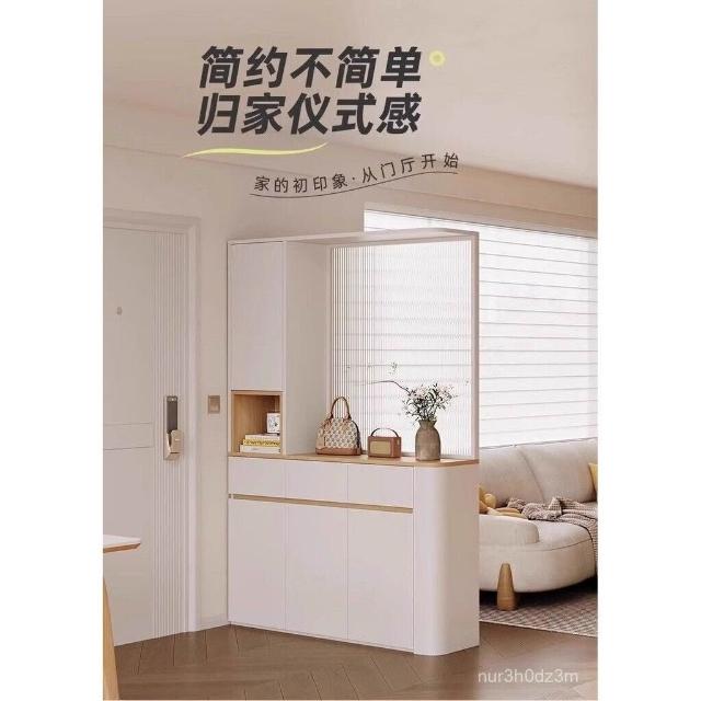 ~奶油風圓弧玄關櫃鞋櫃家用門口隔斷櫃一體玻璃屏風入戶屏風櫃定製 61IX