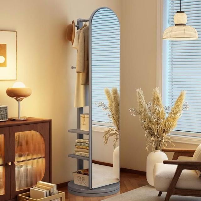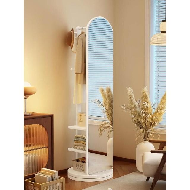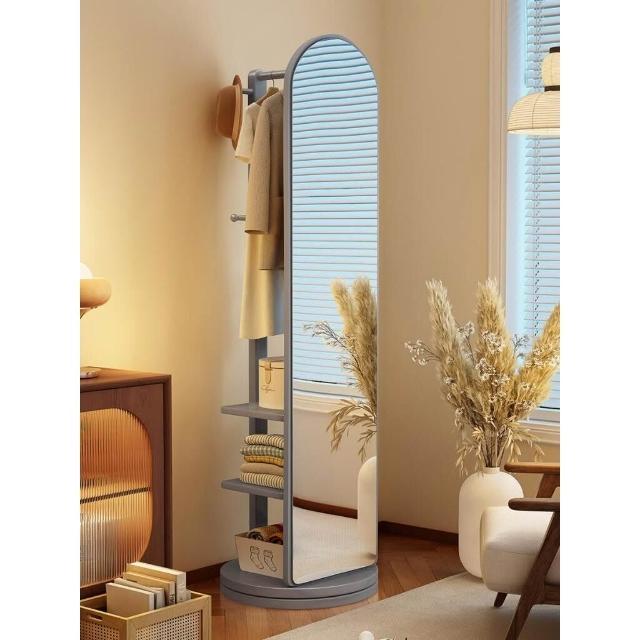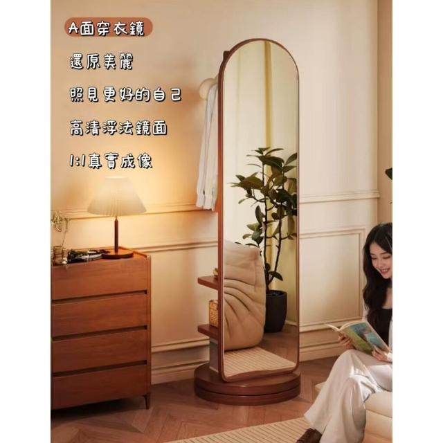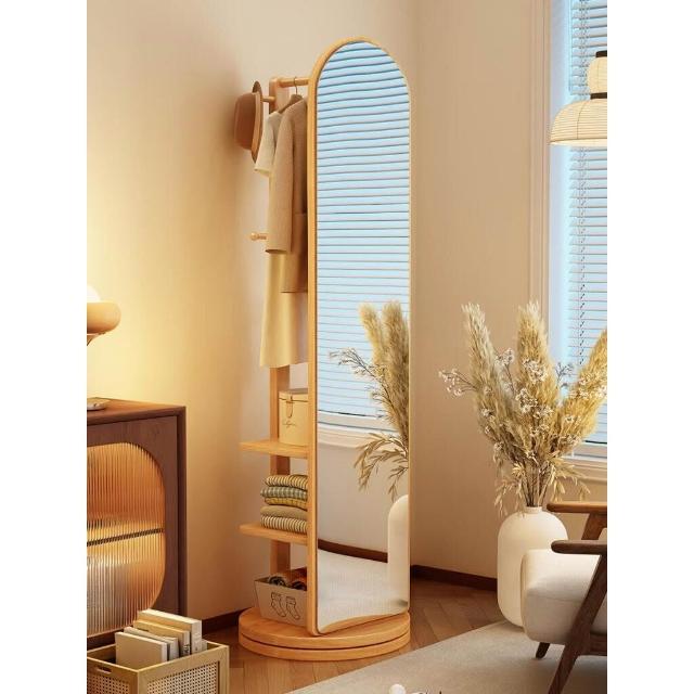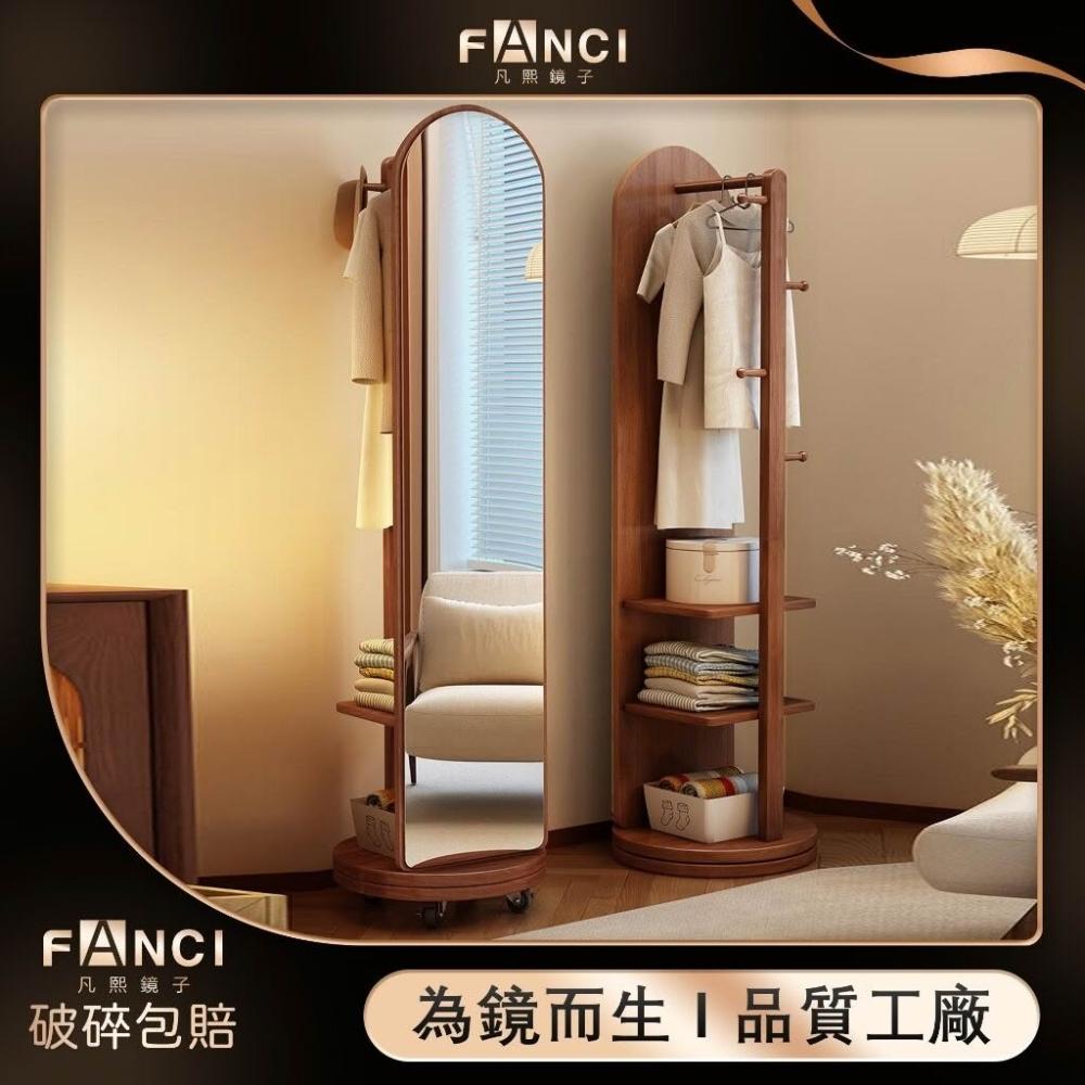 未晚家居館木試衣鏡 全身鏡 落地鏡 旋轉掛衣架 一體試衣間 多功能全身鏡 鏡子