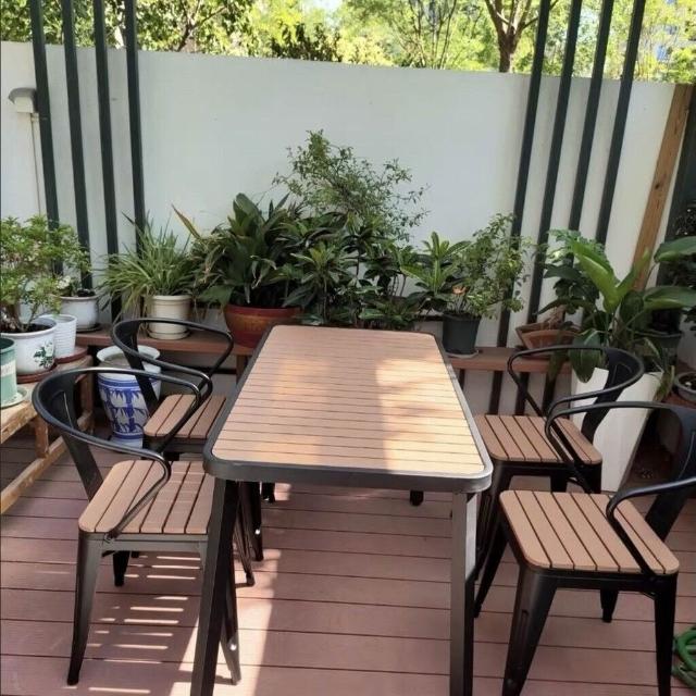 未晚家居館 現代簡約圓形戶外餐桌露天餐廳大排檔餐桌椅組閤一體擺攤桌椅 戶外桌椅 庭院桌椅 花園桌椅 休閒桌椅 陽臺桌椅 4OER