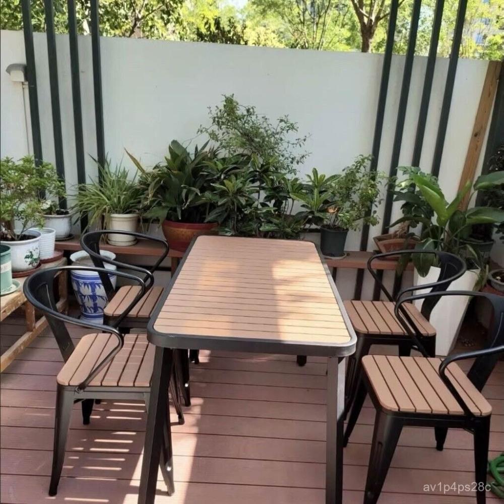 未晚家居館 現代簡約圓形戶外餐桌露天餐廳大排檔餐桌椅組閤一體擺攤桌椅 戶外桌椅 庭院桌椅 花園桌椅 休閒桌椅 陽臺桌椅 4OER