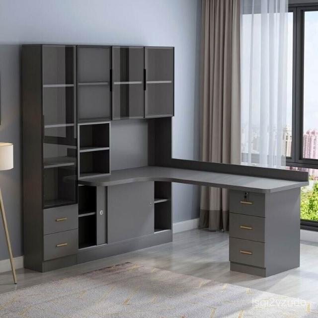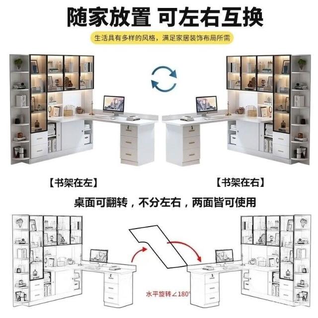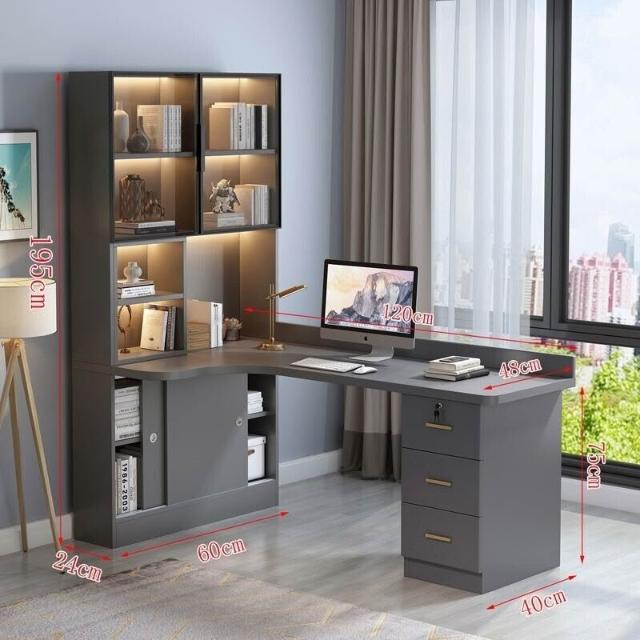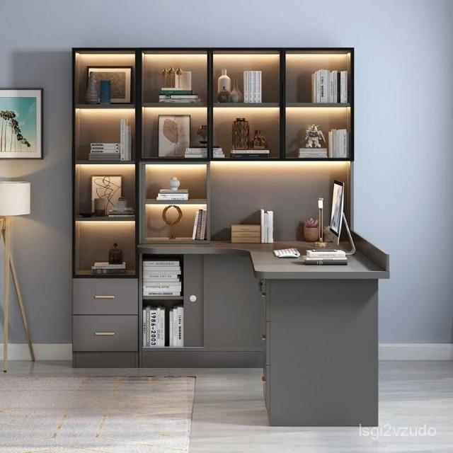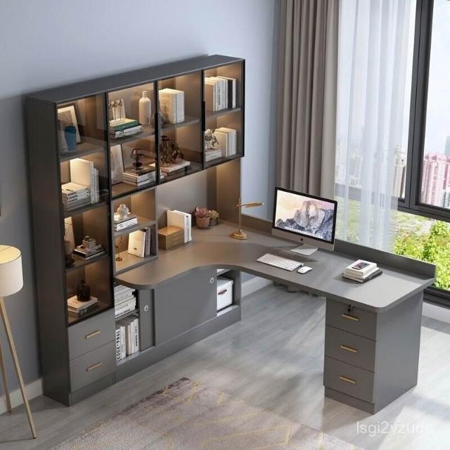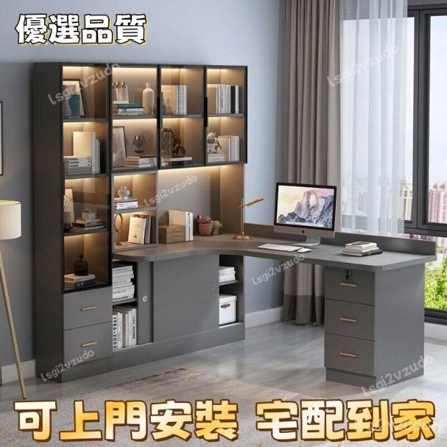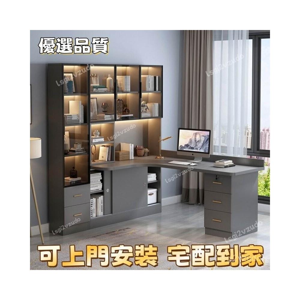 未晚家居館全臺可上門安裝 免運實木轉角臥室書桌書櫃書架組閤一體輕奢辦公電腦桌家用寫字學習桌好品質