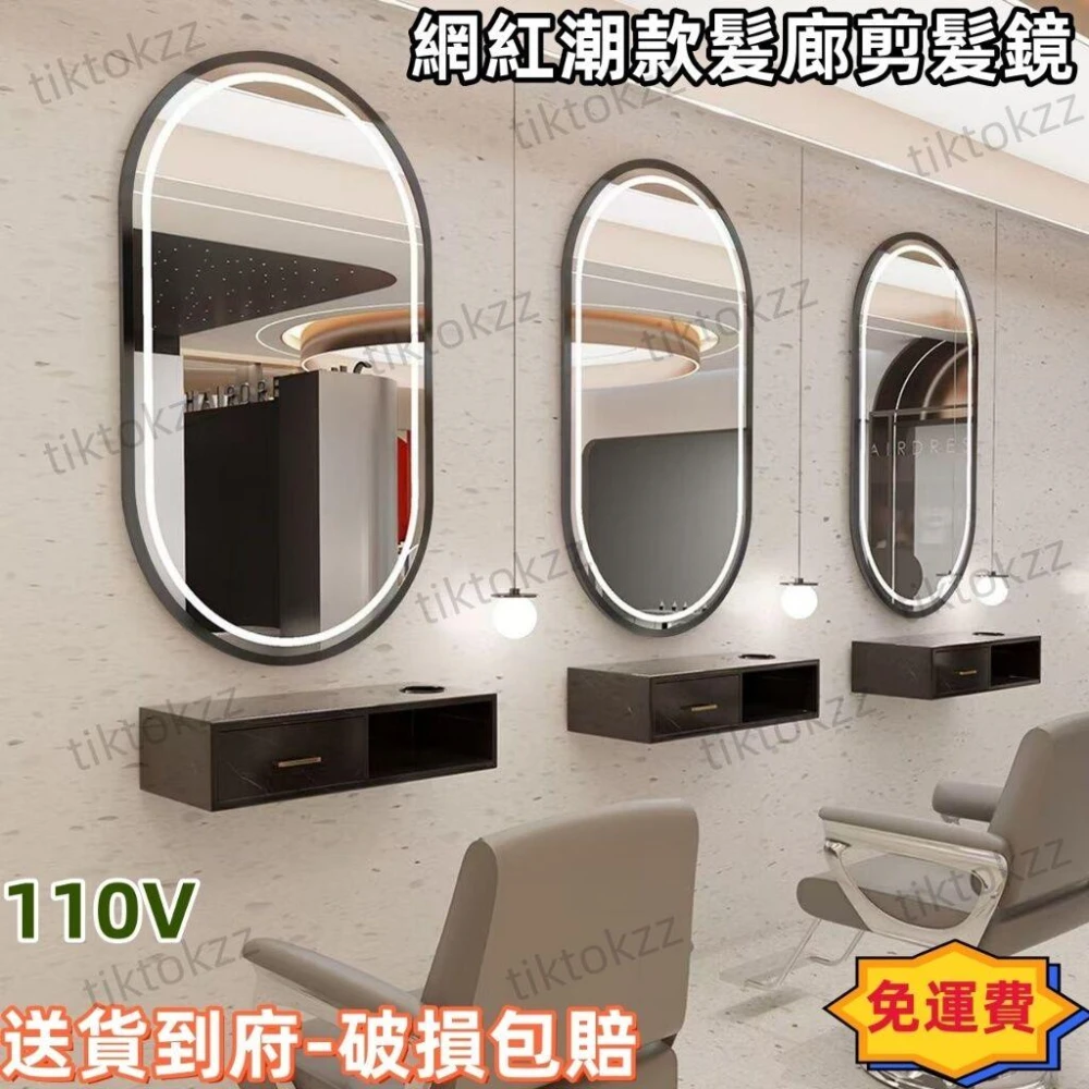 未晚家居館 理髮店專用鏡子帶LED燈美髮鏡臺單麵網紅潮款髮廊掛墻剪髮染燙鏡 理髮鏡 美髮鏡 帶燈鏡