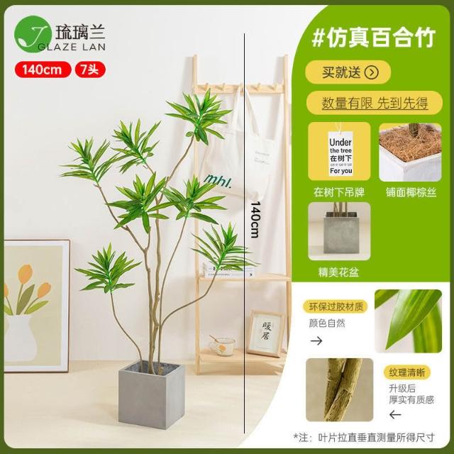 未晚家居館 仿真綠植百合竹盆栽大型北歐風室內客廳高檔假植物裝飾落地式擺件