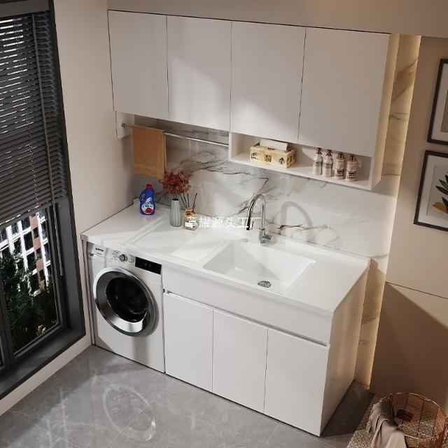 未晚家居館 陽臺洗衣櫃一體臺盆洗衣池槽帶搓板滾筒洗衣機櫃伴侶浴室櫃切角