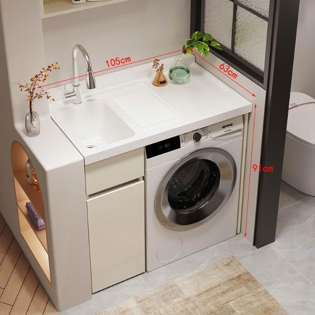 未晚家居館 陽臺洗衣櫃一體臺盆洗衣池槽帶搓板滾筒洗衣機櫃伴侶浴室櫃切角