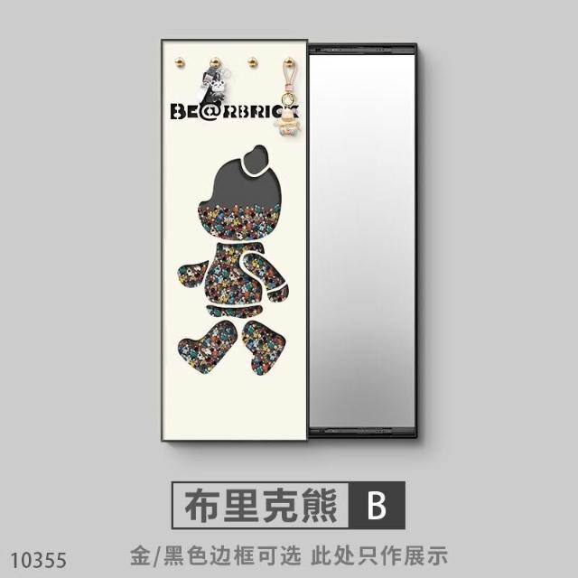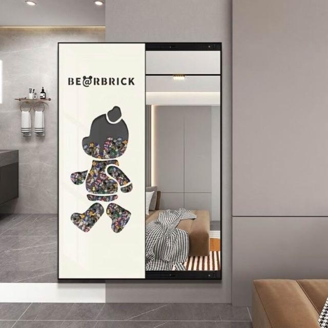 未晚家居館 現代簡約玄關裝飾畫暴力熊遮擋掛畫暗藏式推拉臥室全身鏡穿衣鏡子