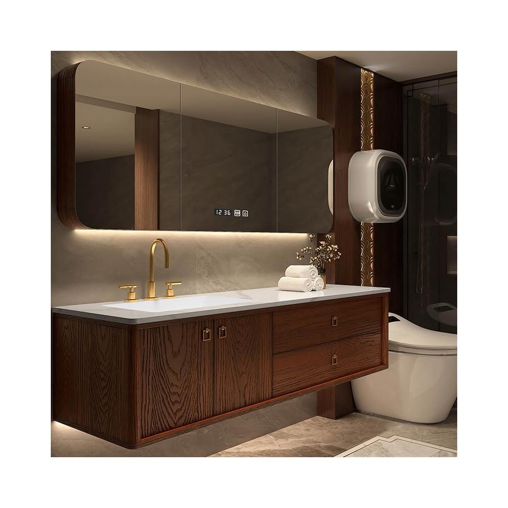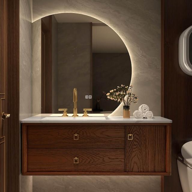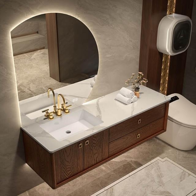 未晚家居館 烤漆紅橡木新中式浴室櫃組合衛生間巖板陶瓷洗手盆洗臉洗漱臺衛浴