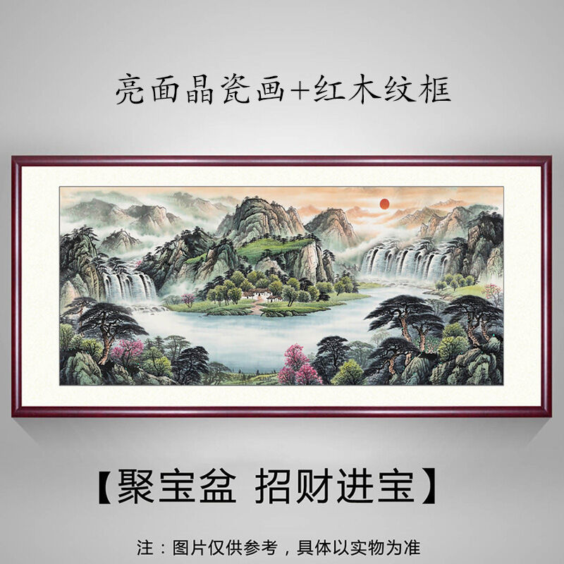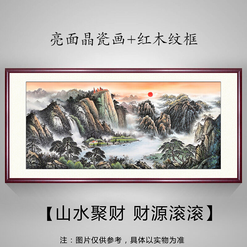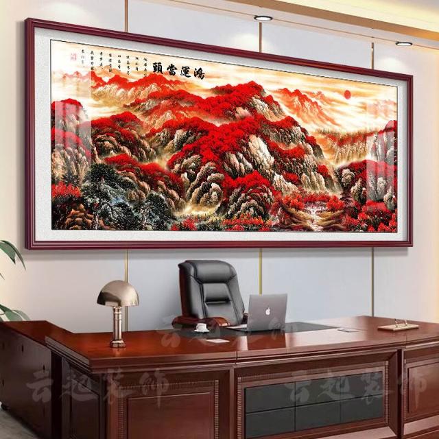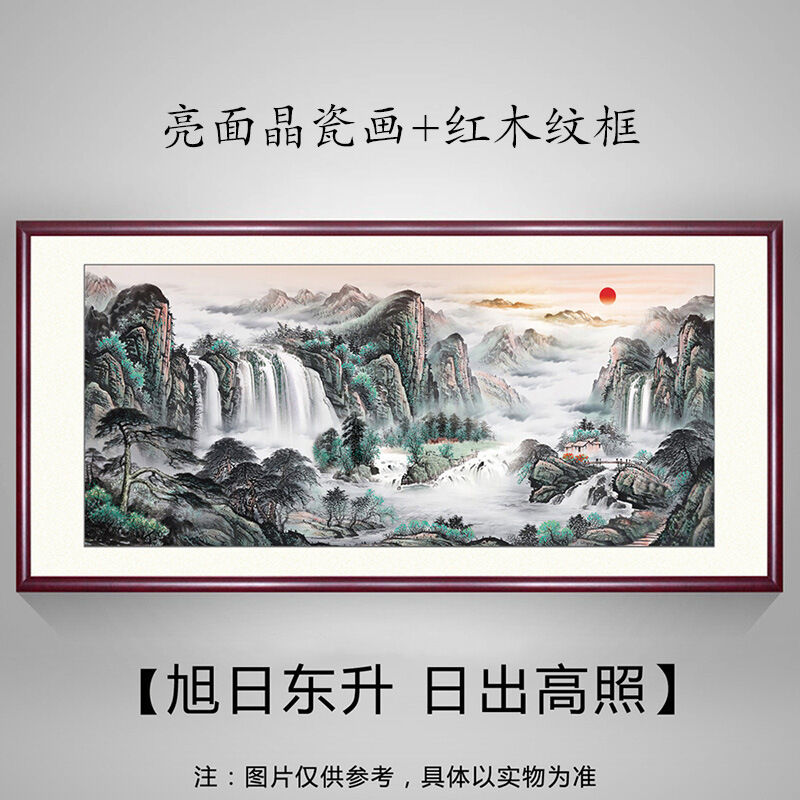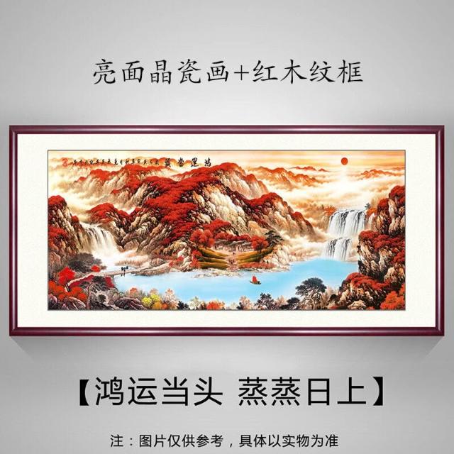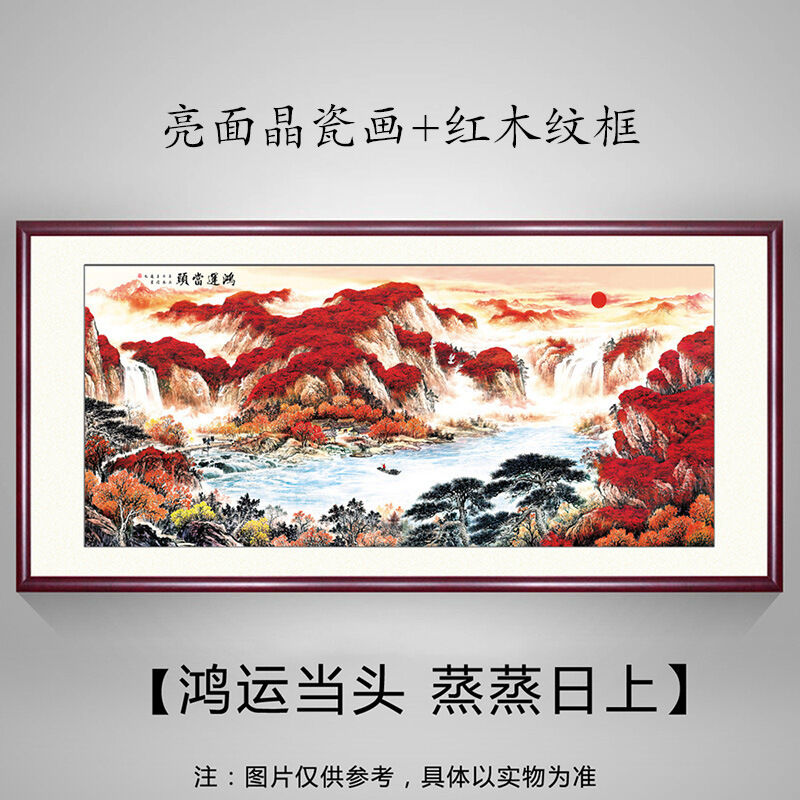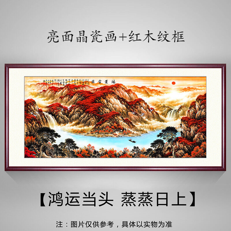 未晚家居館 鴻運當頭掛畫辦公室裝飾字畫紅運國畫山水風景旭日東升客廳背景墻