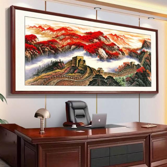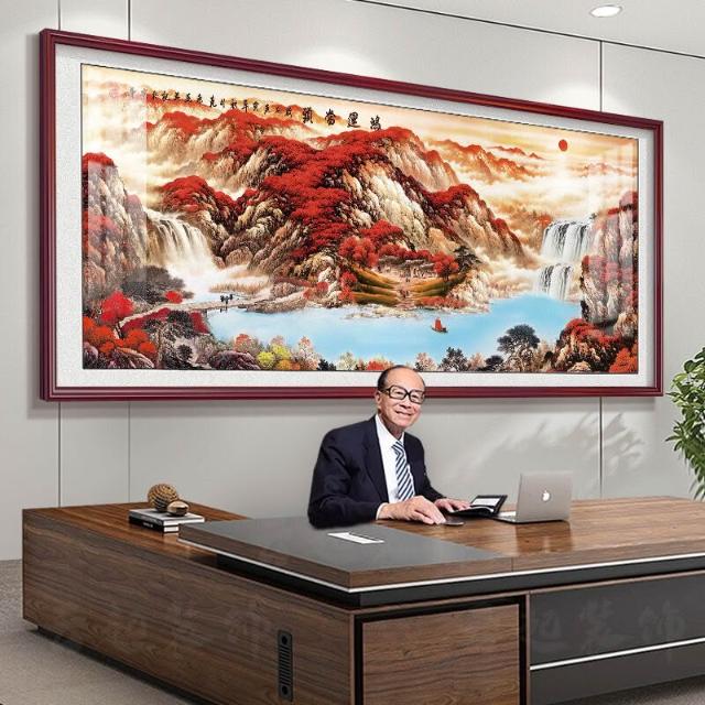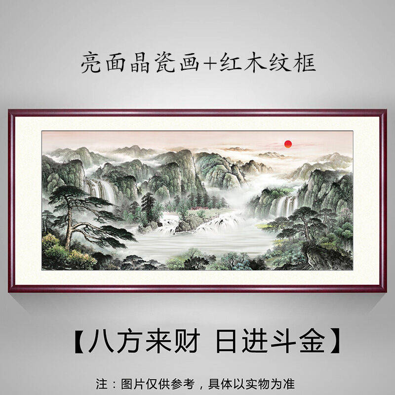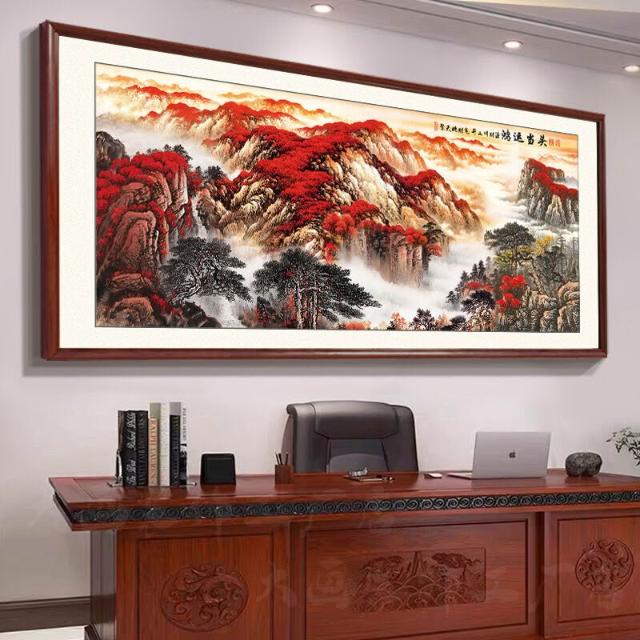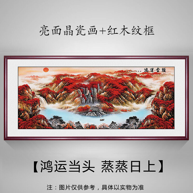 未晚家居館 鴻運當頭掛畫辦公室裝飾字畫紅運國畫山水風景旭日東升客廳背景墻