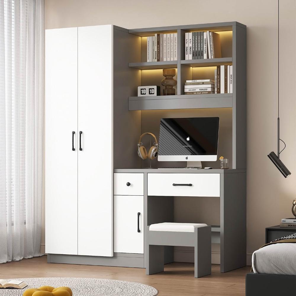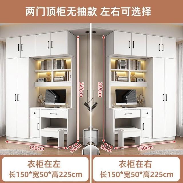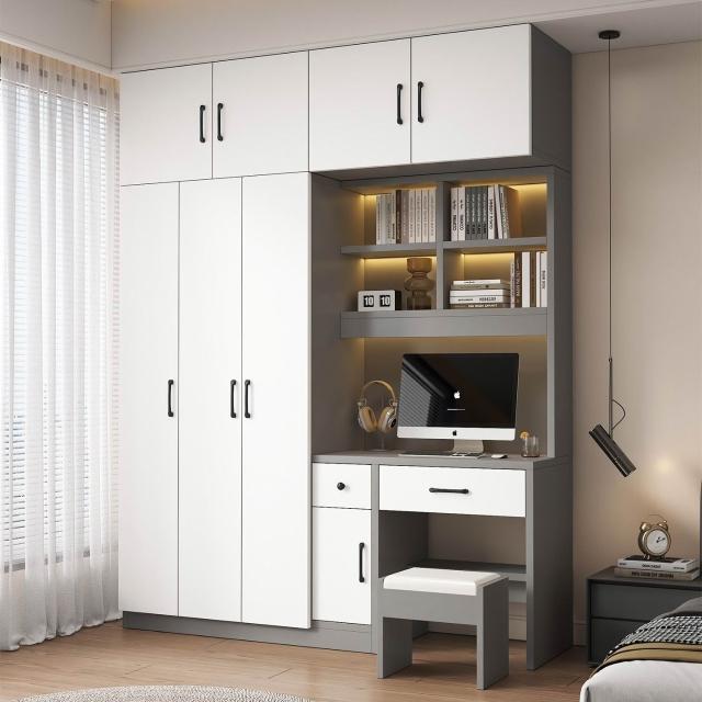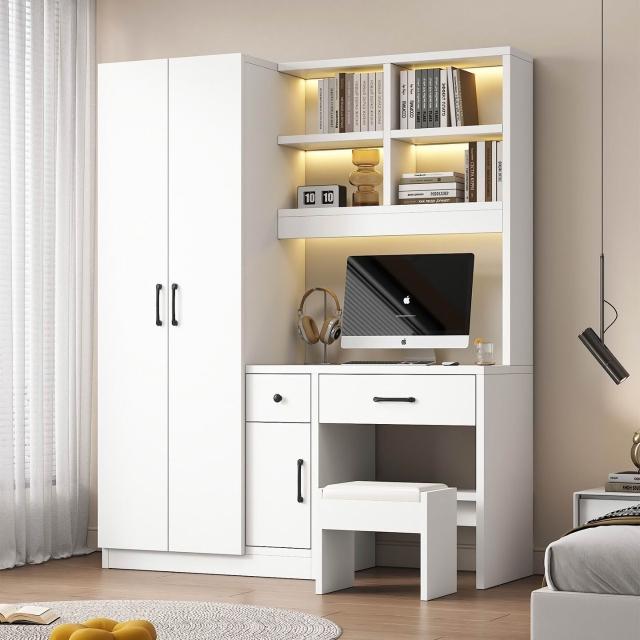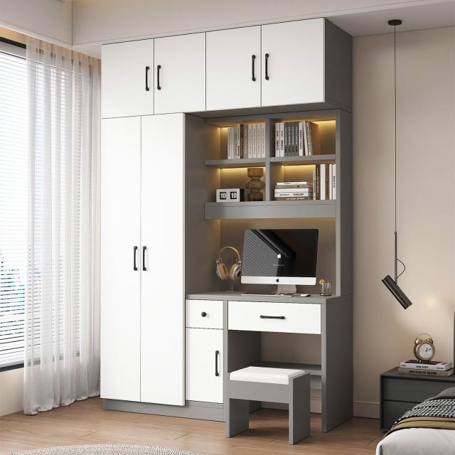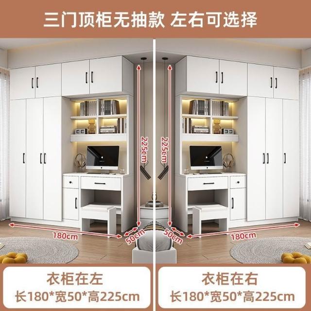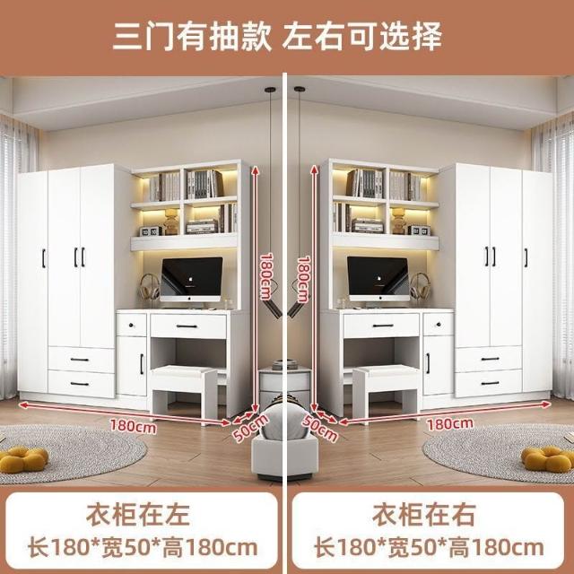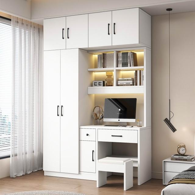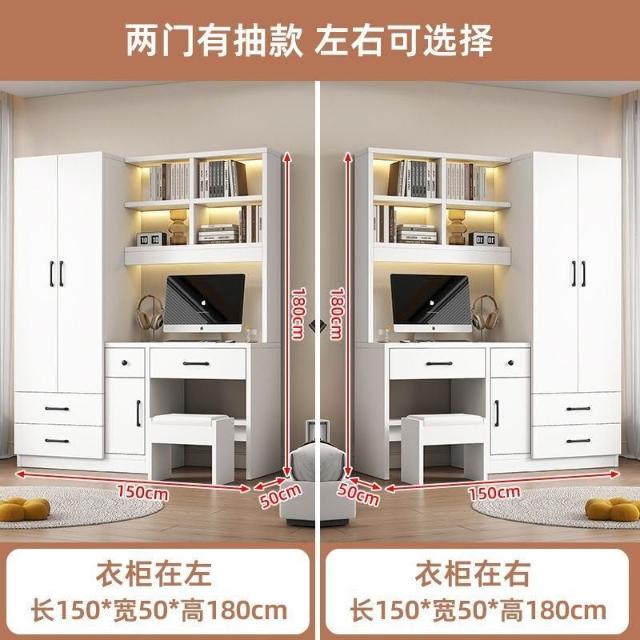 未晚家居館 實木衣櫃家用臥室帶書桌一體組合小戶型學生學習電腦桌連體衣櫥