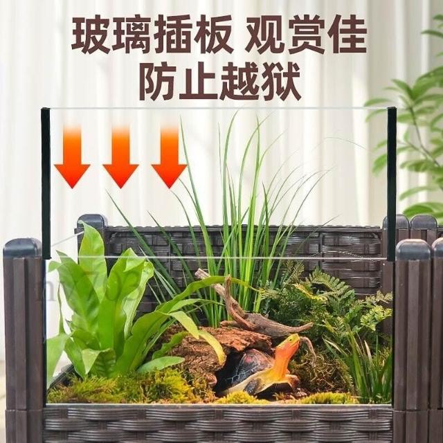 未晚家居館 生態烏龜缸 水陸飼養缸 造景黃緣養殖龜箱 內嵌內置玻璃缸帶躲避輪子 生態大型龜缸 水陸兩棲造景缸