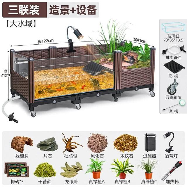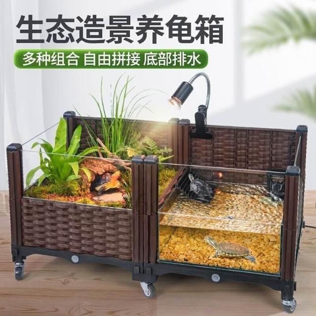 未晚家居館 生態烏龜缸 水陸飼養缸 造景黃緣養殖龜箱 內嵌內置玻璃缸帶躲避輪子 生態大型龜缸 水陸兩棲造景缸