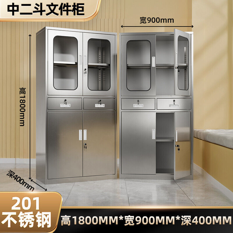 未晚家居館 304不銹鋼櫃子 儲物櫃 矮櫃 戶外文件資料收納抽屜帶鎖雙開門工具櫃 層架 收納架 收納 收納櫃