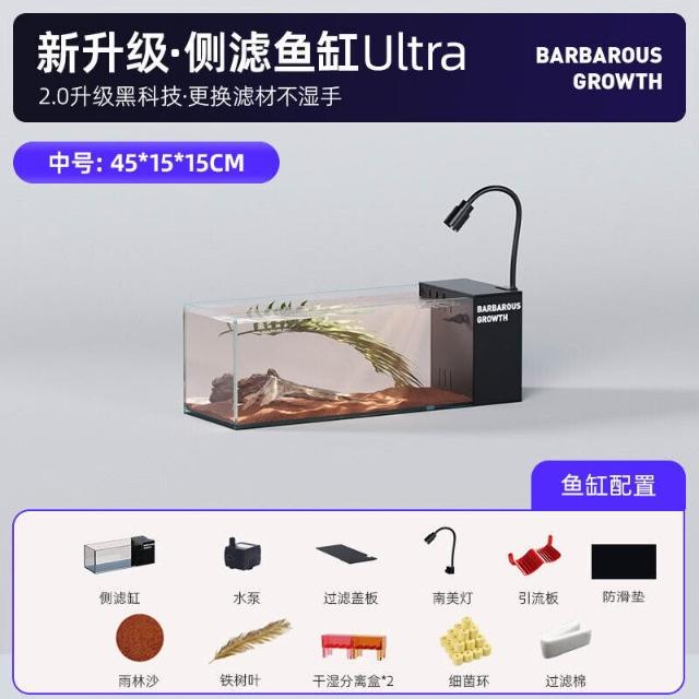 未晚家居館 生態溪流缸 側濾桌面魚缸 小型客廳造景全套過濾製氧一體機 側濾魚缸 免換水魚缸 桌面小魚缸 超白魚缸