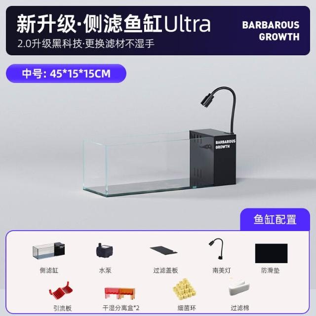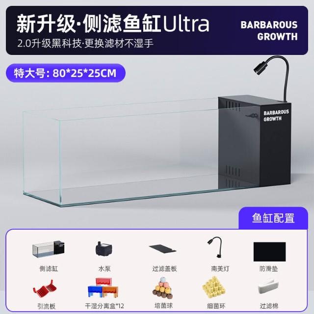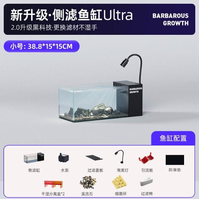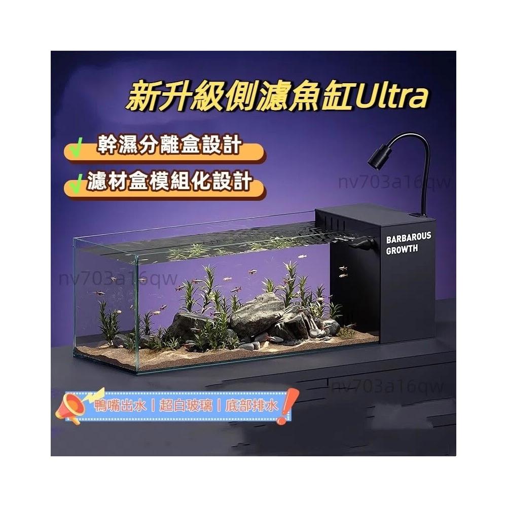 未晚家居館 生態溪流缸 側濾桌面魚缸 小型客廳造景全套過濾製氧一體機 側濾魚缸 免換水魚缸 桌面小魚缸 超白魚缸