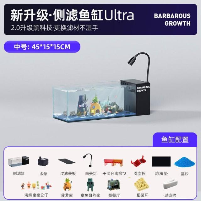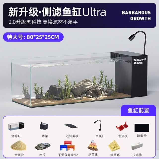 未晚家居館 生態溪流缸 側濾桌面魚缸 小型客廳造景全套過濾製氧一體機 側濾魚缸 免換水魚缸 桌面小魚缸 超白魚缸