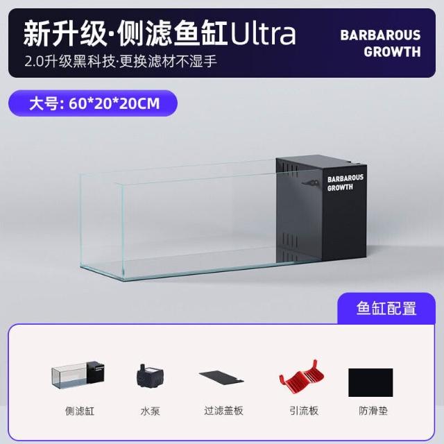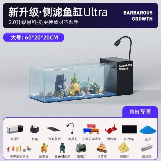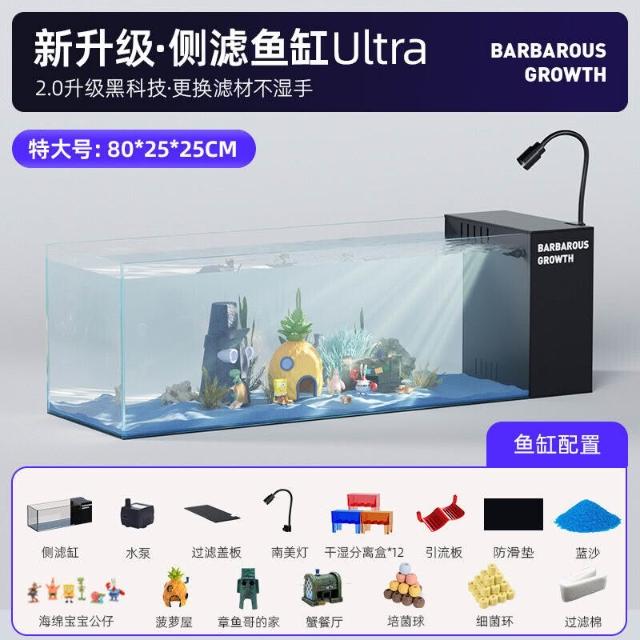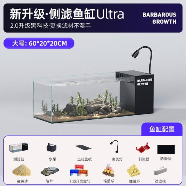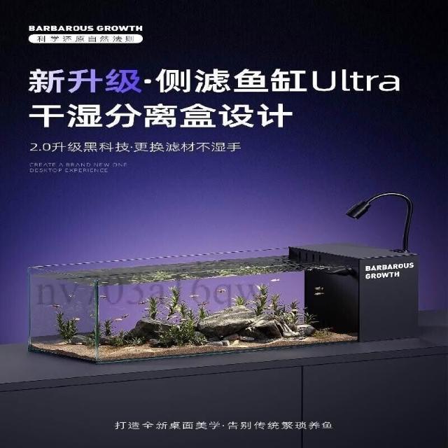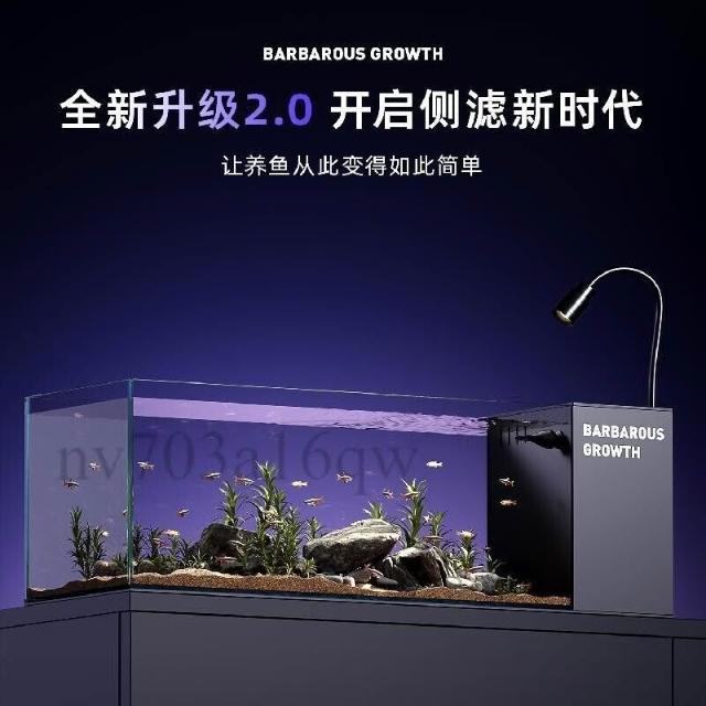 未晚家居館 生態溪流缸 側濾桌面魚缸 小型客廳造景全套過濾製氧一體機 側濾魚缸 免換水魚缸 桌面小魚缸 超白魚缸