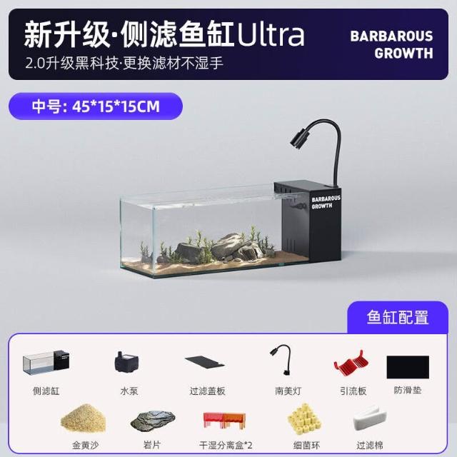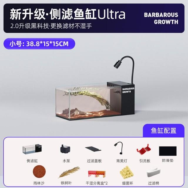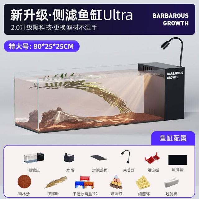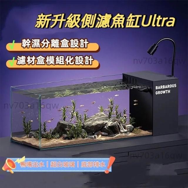 未晚家居館 生態溪流缸 側濾桌面魚缸 小型客廳造景全套過濾製氧一體機 側濾魚缸 免換水魚缸 桌面小魚缸 超白魚缸