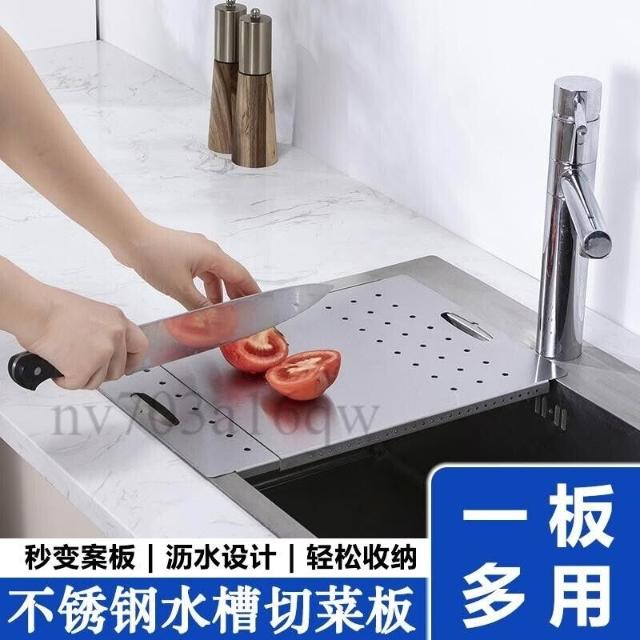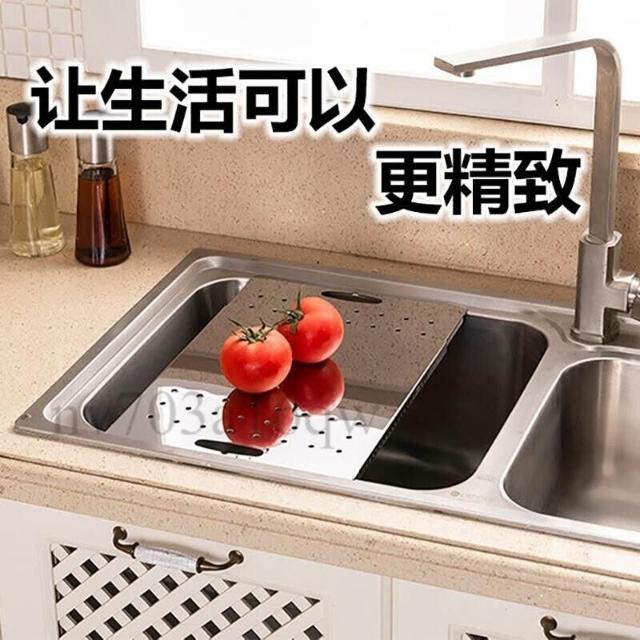 未晚家居館廚房水槽 切菜板 可伸縮不銹鋼洗碗水池蓋板 洗菜盆吧檯瀝水砧板 案板 不銹鋼水槽 水槽蓋板 水槽擋水板