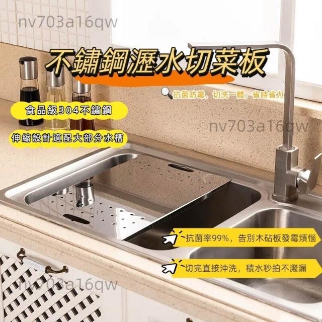 未晚家居館廚房水槽 切菜板 可伸縮不銹鋼洗碗水池蓋板 洗菜盆吧檯瀝水砧板 案板 不銹鋼水槽 水槽蓋板 水槽擋水板