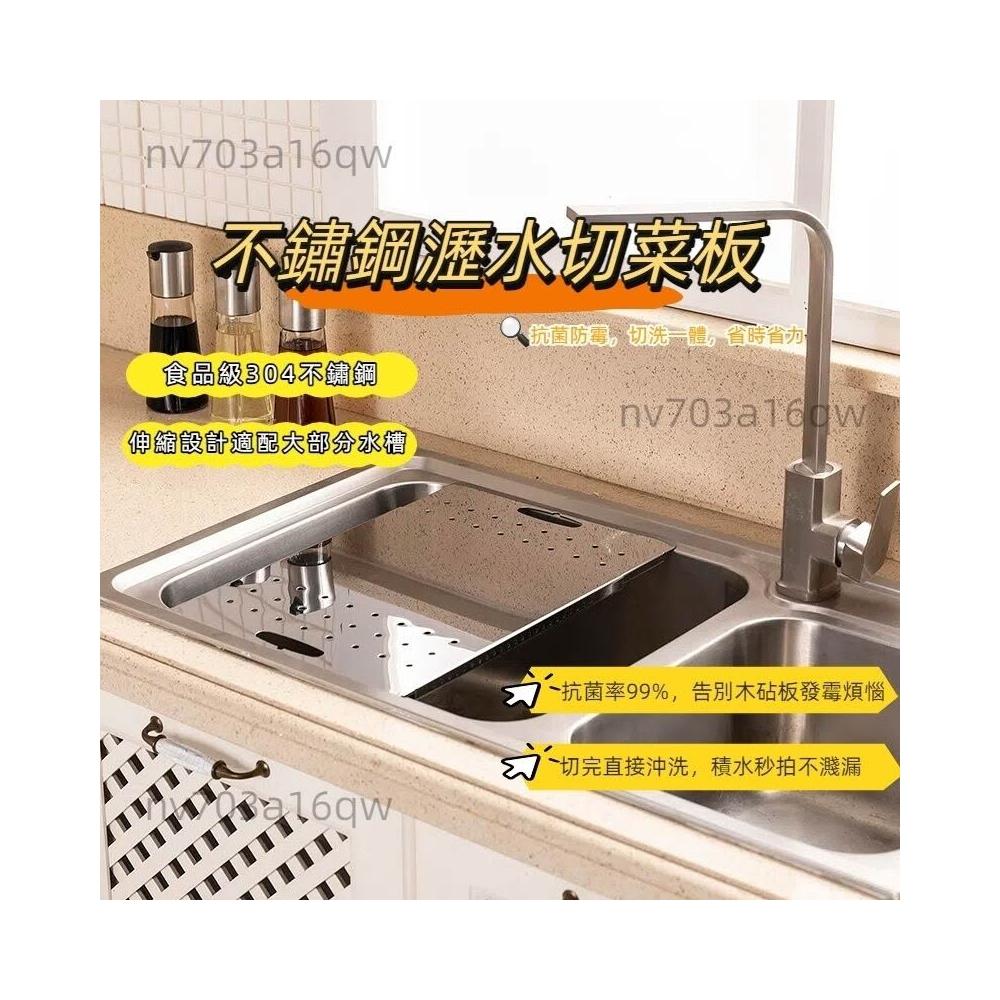未晚家居館廚房水槽 切菜板 可伸縮不銹鋼洗碗水池蓋板 洗菜盆吧檯瀝水砧板 案板 不銹鋼水槽 水槽蓋板 水槽擋水板