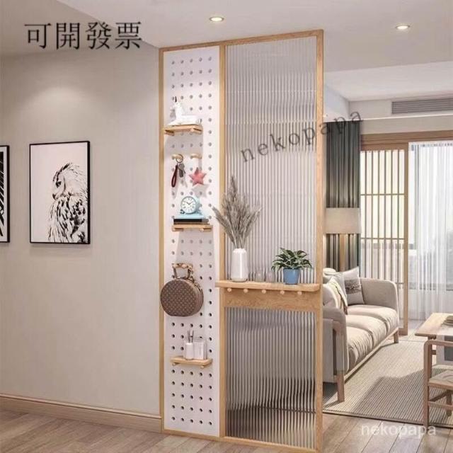 未晚家居館 實木洞洞闆長虹玻璃屏風簡約日式客廳入戶玄關收納置物架隔斷傢用 屏風 玄關 隔斷闆 居傢裝飾