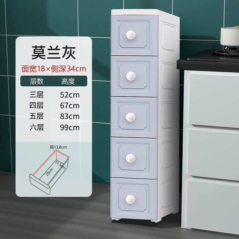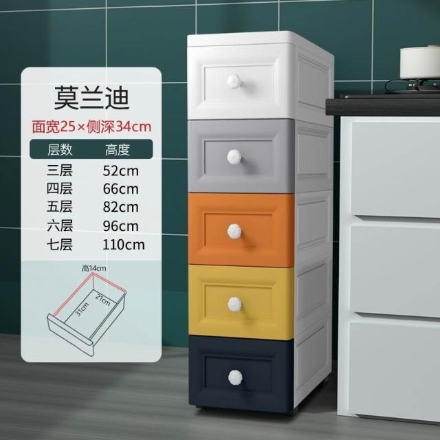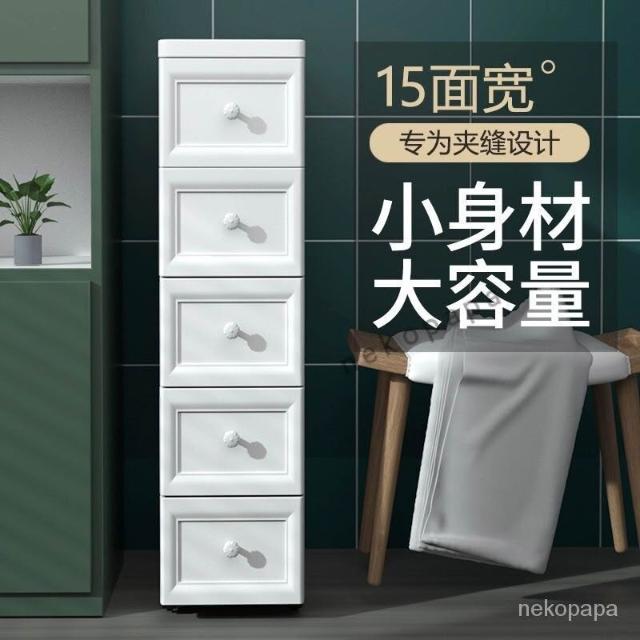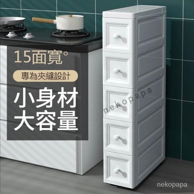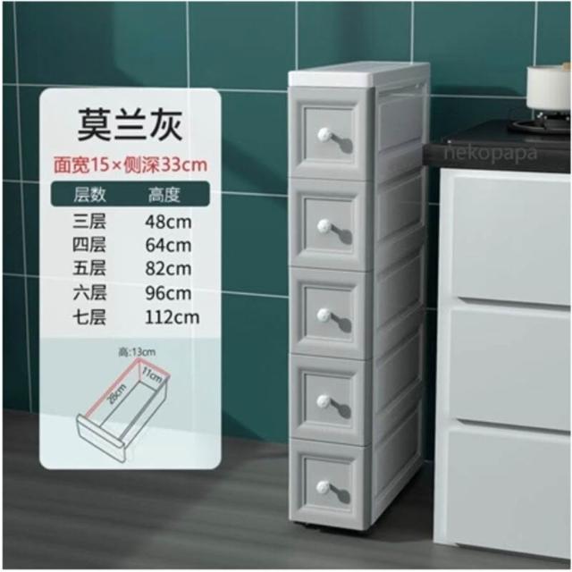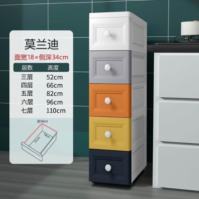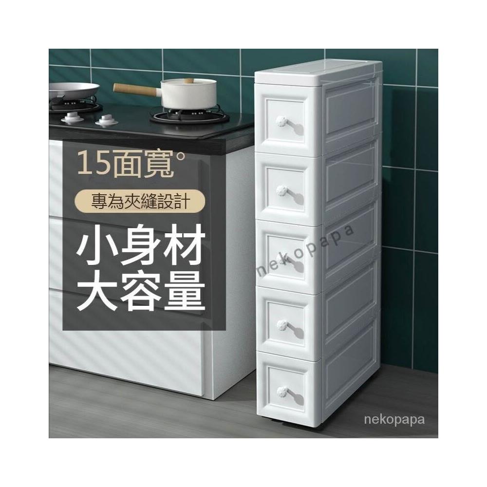 未晚家居館 15/18/25cm夾縫收納櫃抽屜式衛生間廚房收納盒整理箱窄縫隙置物架移動夾縫置物架收納推車隙縫間隙