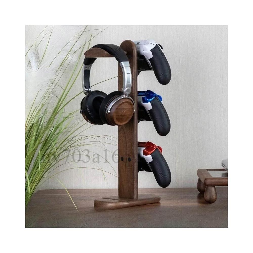 未晚家居館免安裝胡桃木頭戴式耳機支架 木製switch遊戲手柄 XBOX實木收納架子 手把架 ps5手把支架