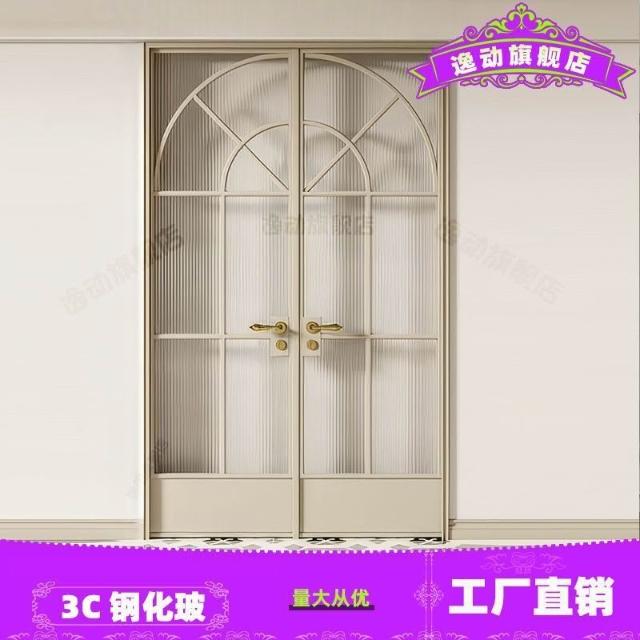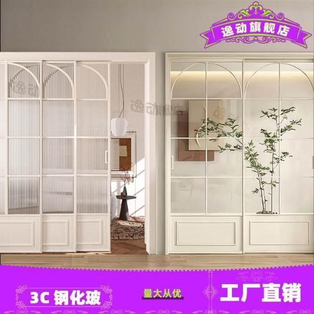未晚家居館 法式推拉門三聯動钛鎂合金玻璃門廚房陽臺衛生間對開門