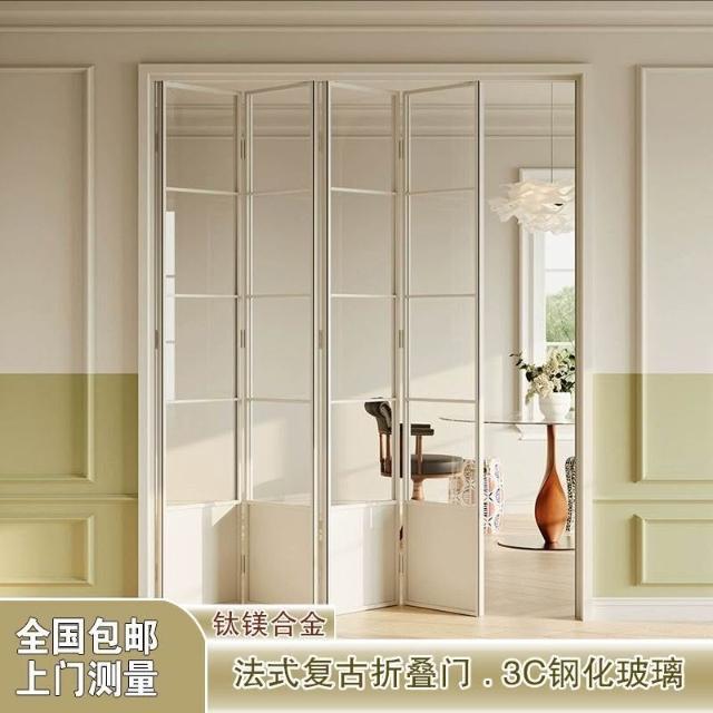 未晚家居館 極窄法式折疊門廚房客廳陽臺衛生間門钛鎂合金隔斷玻璃推拉門