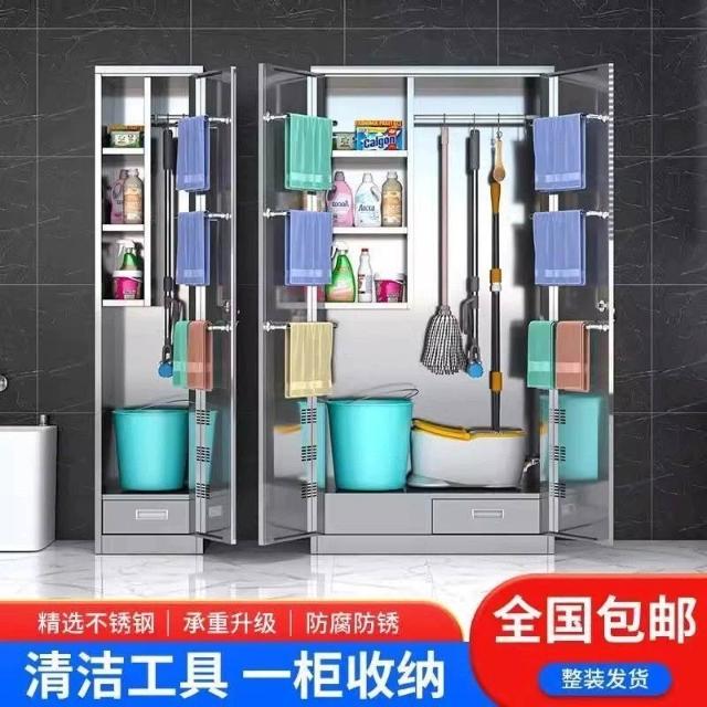 未晚家居館 304不銹鋼清潔櫃戶外陽臺收納保潔櫃家用庭院花園雜物工具櫃