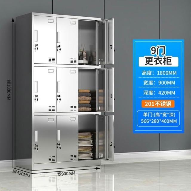 未晚家居館 304不銹鋼更衣櫃更衣室員工儲物櫃帶鎖多門鞋櫃多格食堂碗櫃