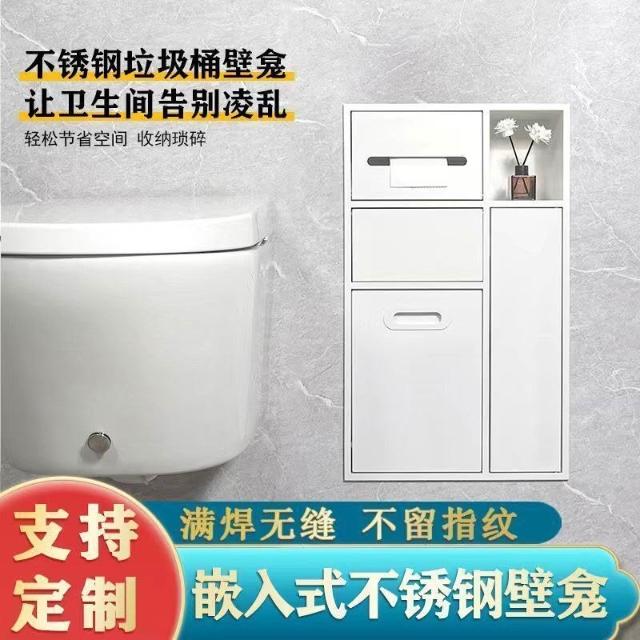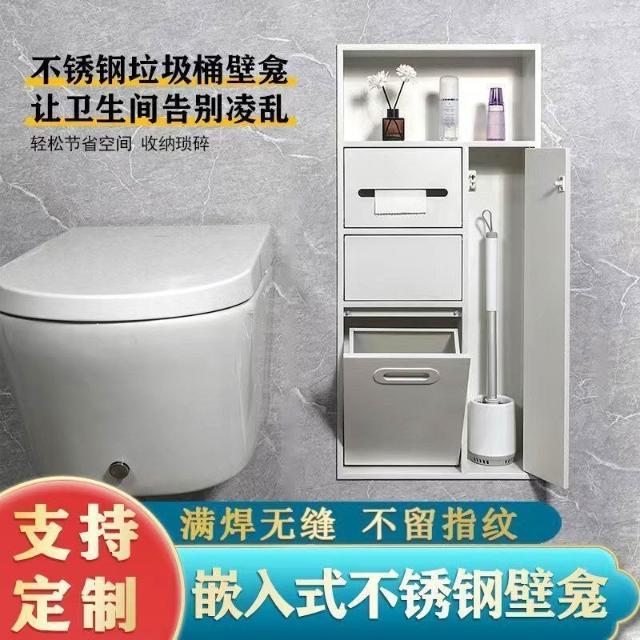 未晚家居館 不銹鋼壁龛衛生間浴室金屬嵌入式垃圾桶櫃成品馬桶邊可