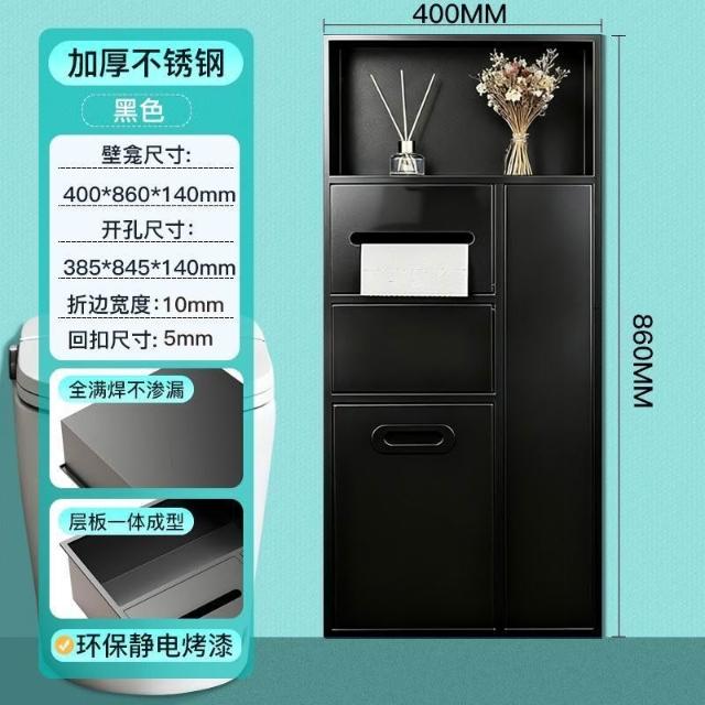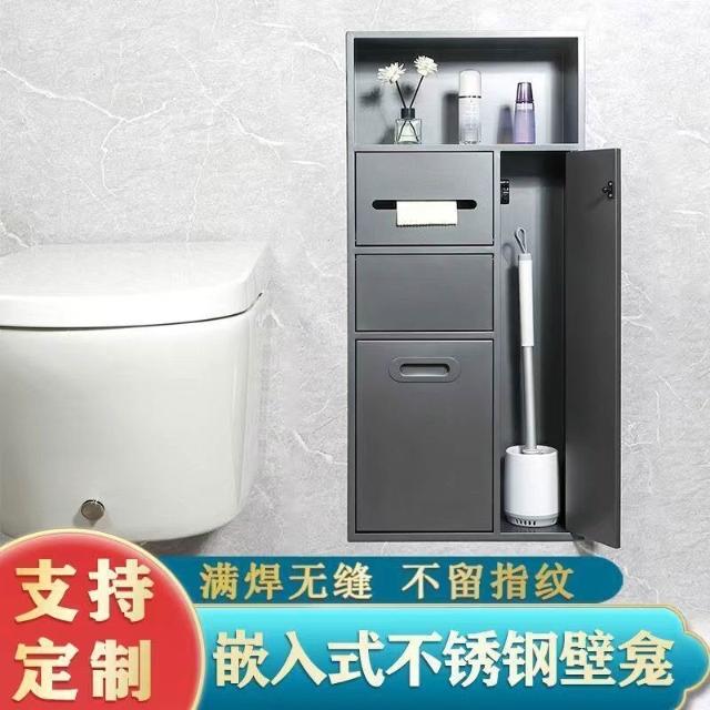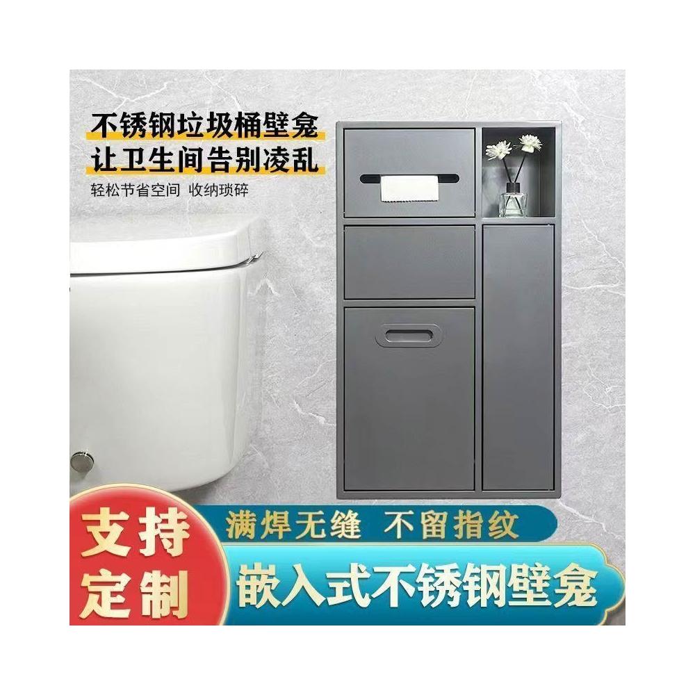 未晚家居館 不銹鋼壁龛衛生間浴室金屬嵌入式垃圾桶櫃成品馬桶邊可