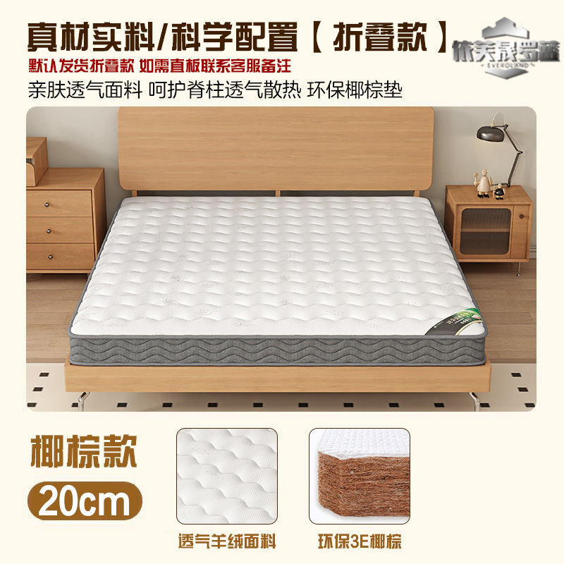 天然環保椰棕床墊1.8m雙人偏硬床墊1.5m學生折疊透氣護脊棕墊