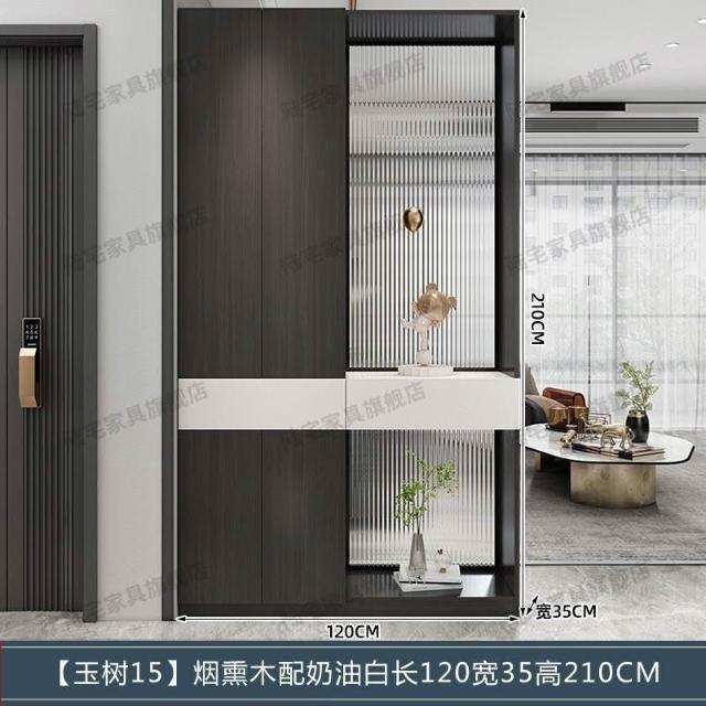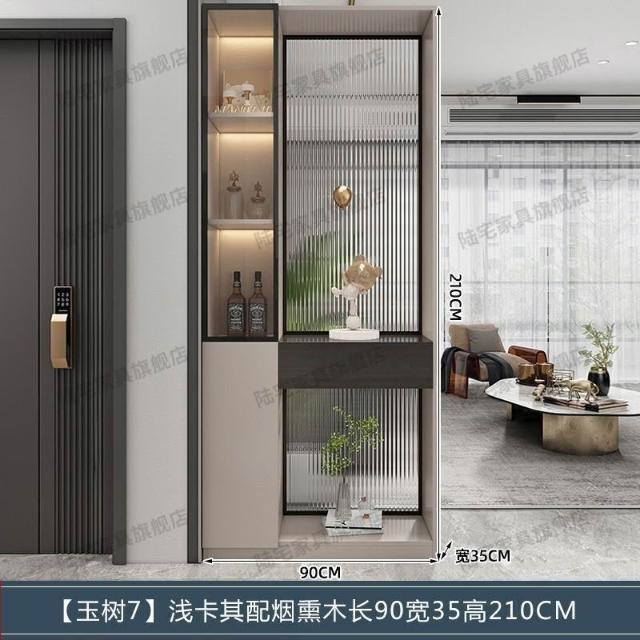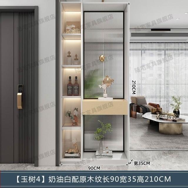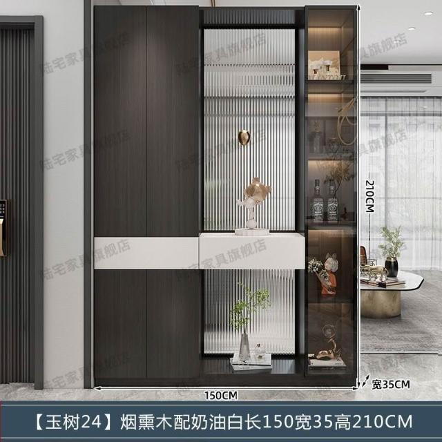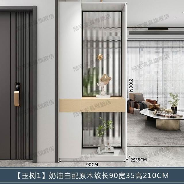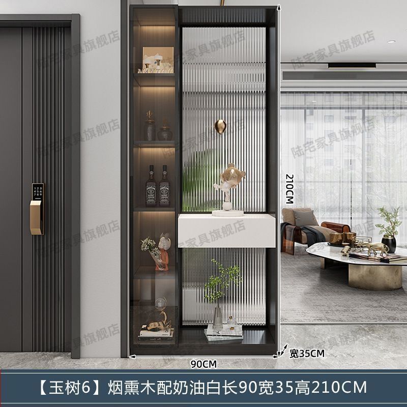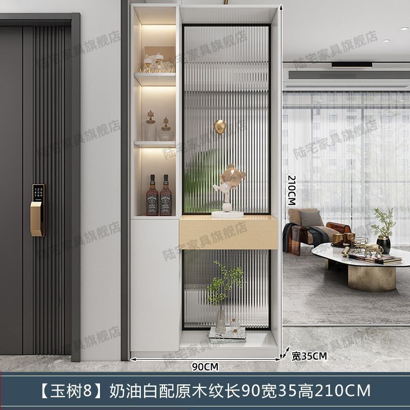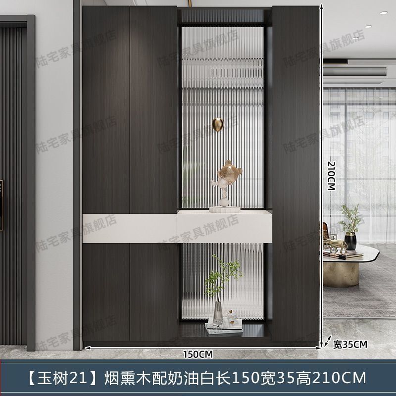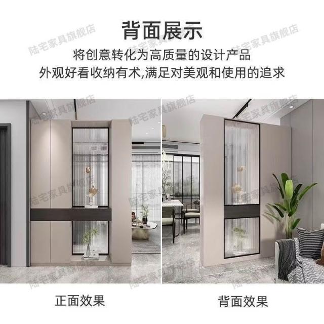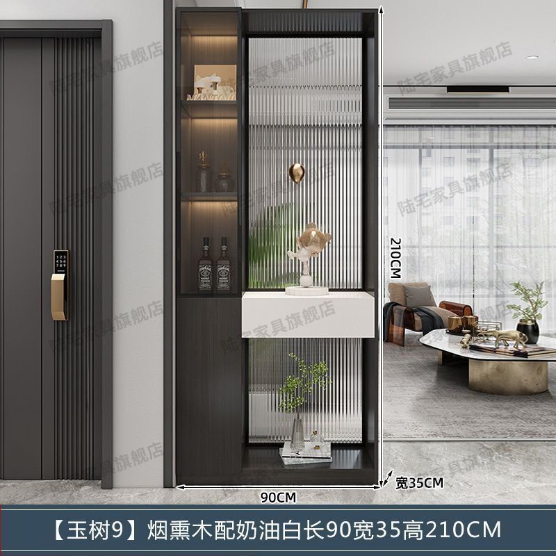 未晚家居館 意式極簡屏風入戶玄關櫃隔斷櫃輕奢實木玻璃屏風隔斷客廳遮擋鞋櫃