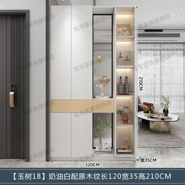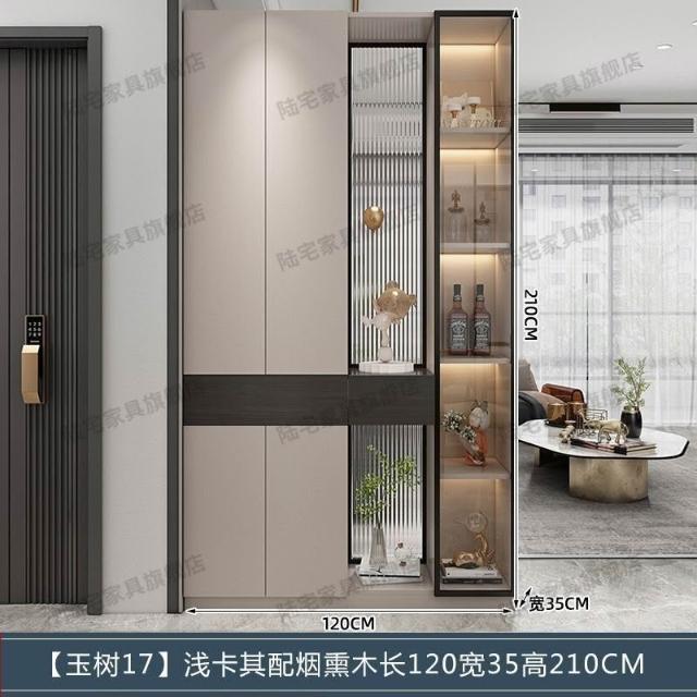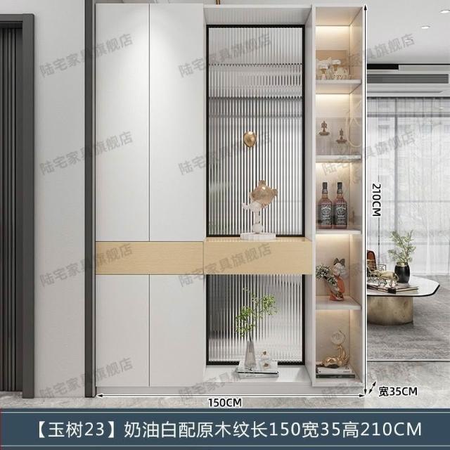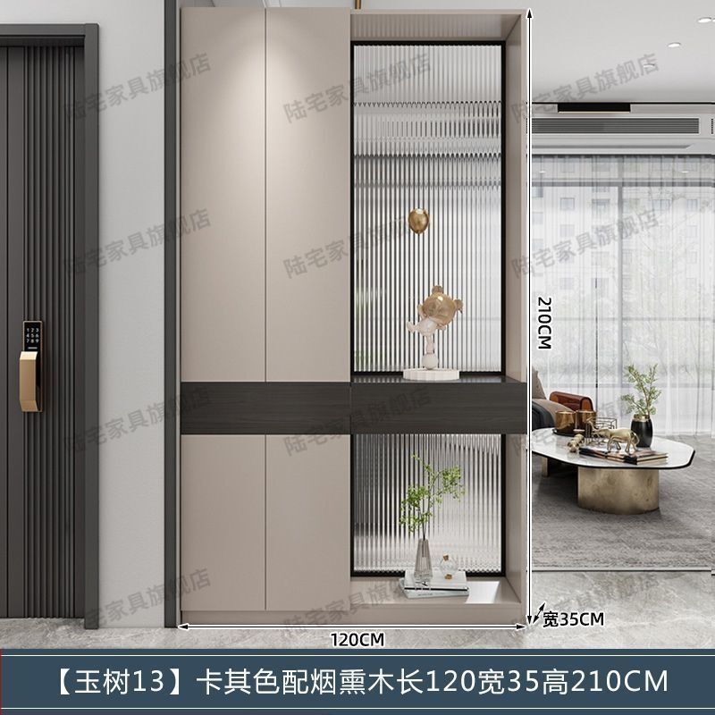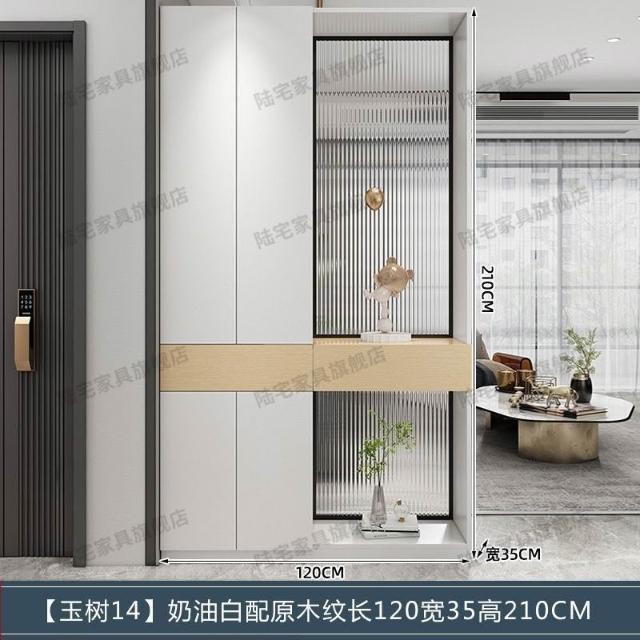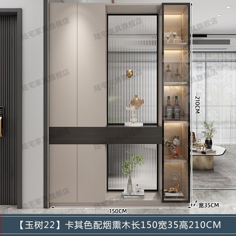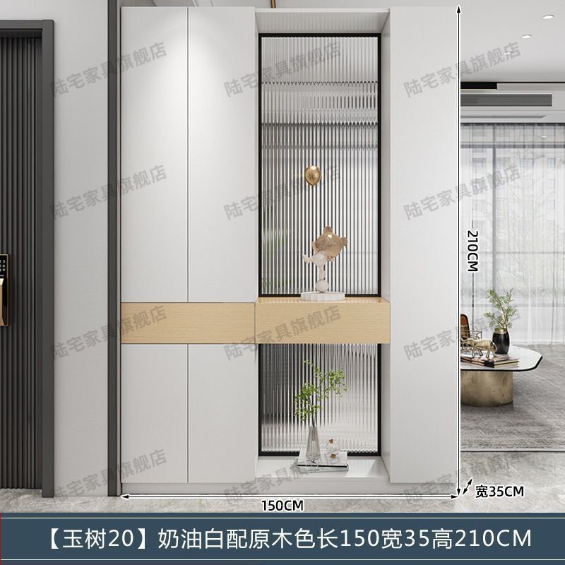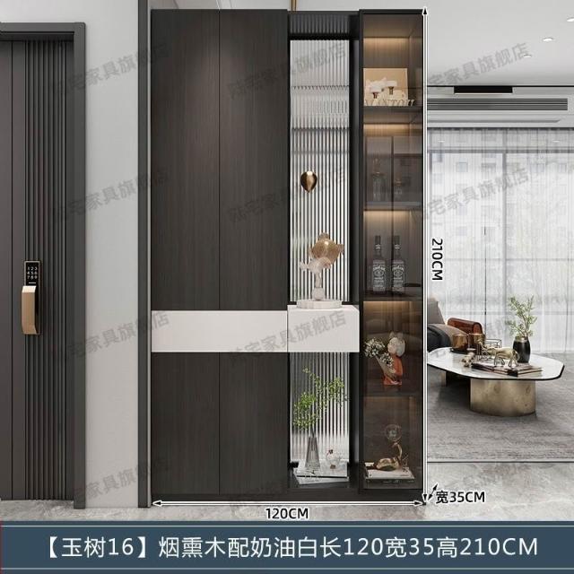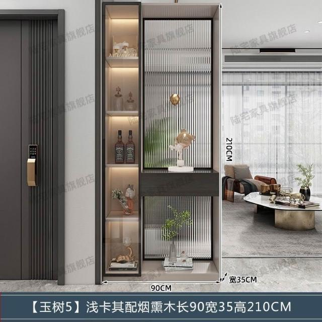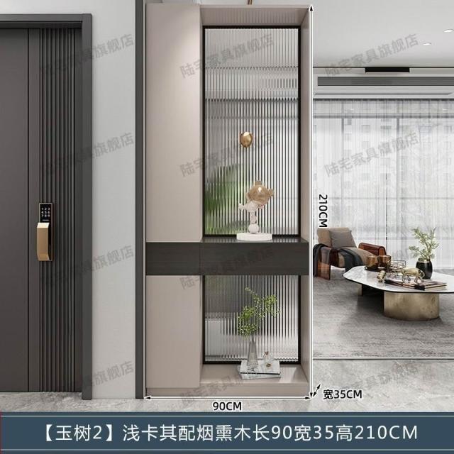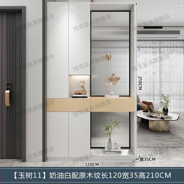 未晚家居館 意式極簡屏風入戶玄關櫃隔斷櫃輕奢實木玻璃屏風隔斷客廳遮擋鞋櫃