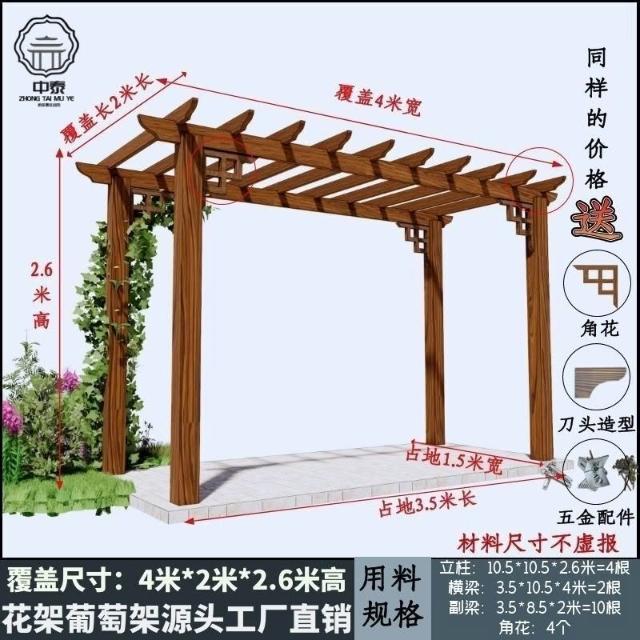 未晚家居館 防腐木碳化木葡萄架爬藤花架涼亭庭院葡萄架遮陽棚戶外車庫