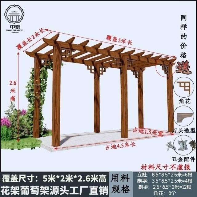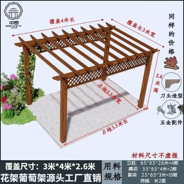 未晚家居館 防腐木碳化木葡萄架爬藤花架涼亭庭院葡萄架遮陽棚戶外車庫