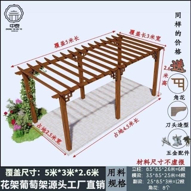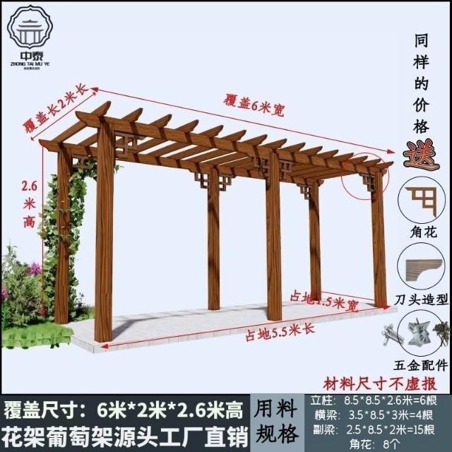 未晚家居館 防腐木碳化木葡萄架爬藤花架涼亭庭院葡萄架遮陽棚戶外車庫