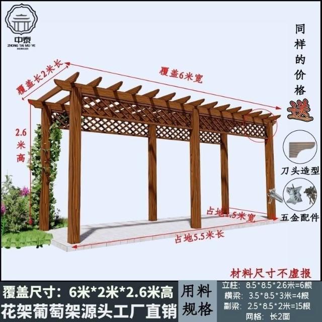 未晚家居館 防腐木碳化木葡萄架爬藤花架涼亭庭院葡萄架遮陽棚戶外車庫