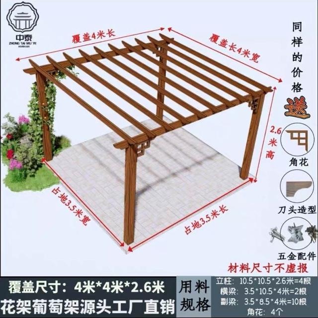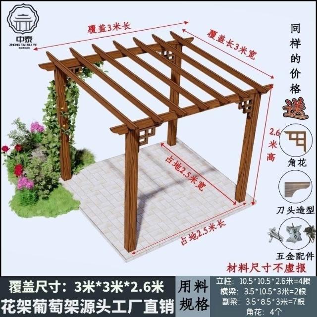 未晚家居館 防腐木碳化木葡萄架爬藤花架涼亭庭院葡萄架遮陽棚戶外車庫