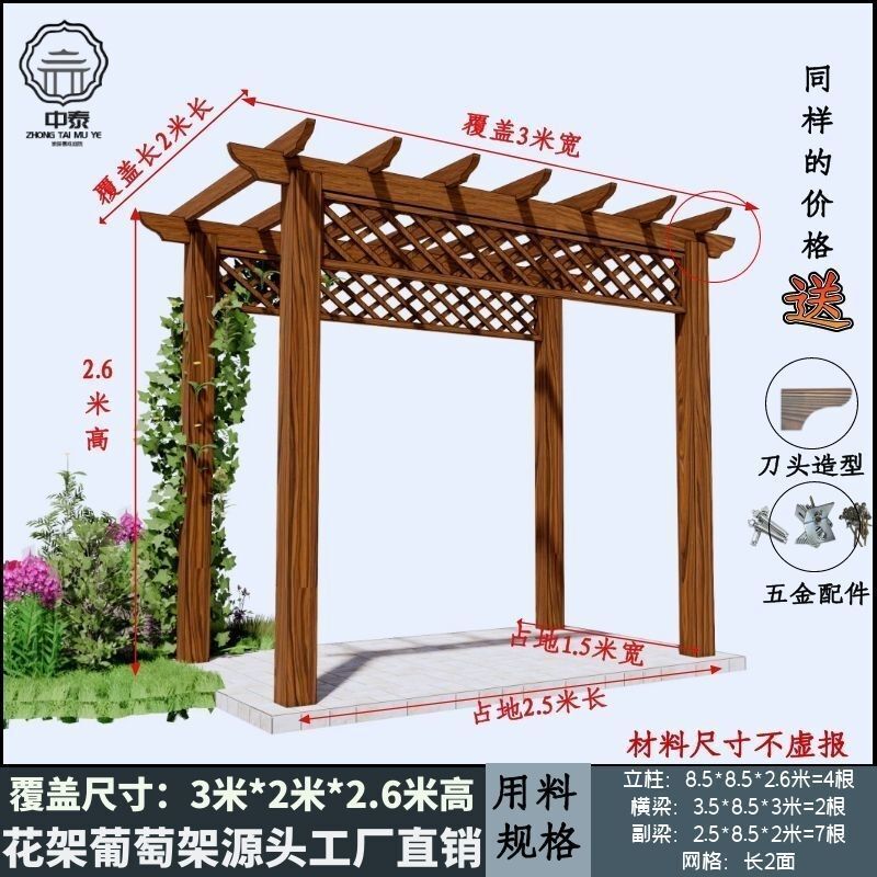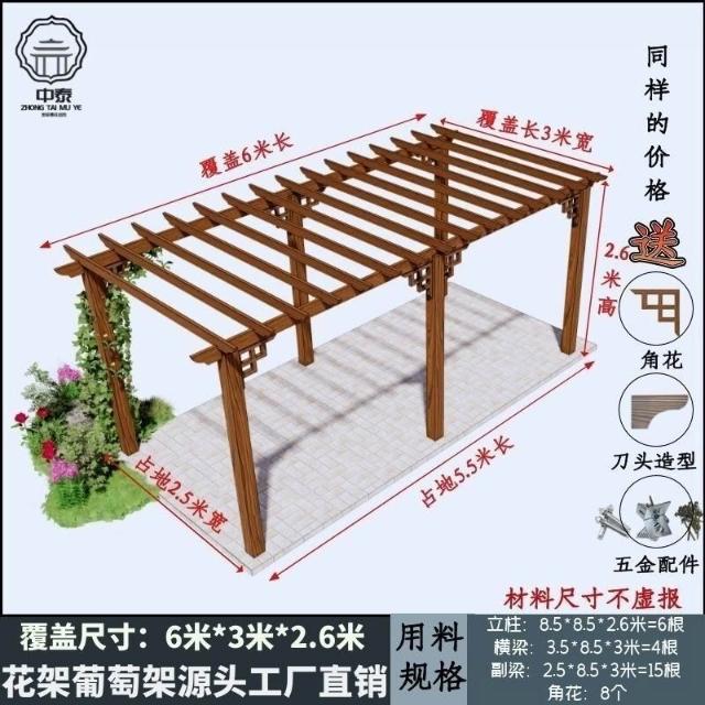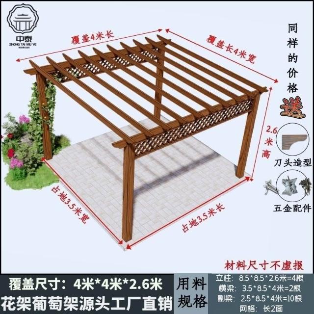 未晚家居館 防腐木碳化木葡萄架爬藤花架涼亭庭院葡萄架遮陽棚戶外車庫
