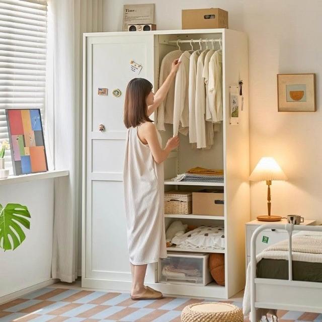 未晚家居館 鋼製衣櫃簡約現代家用學生房儲物收納推拉門衣櫥大容量零甲醛鐵櫃