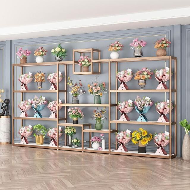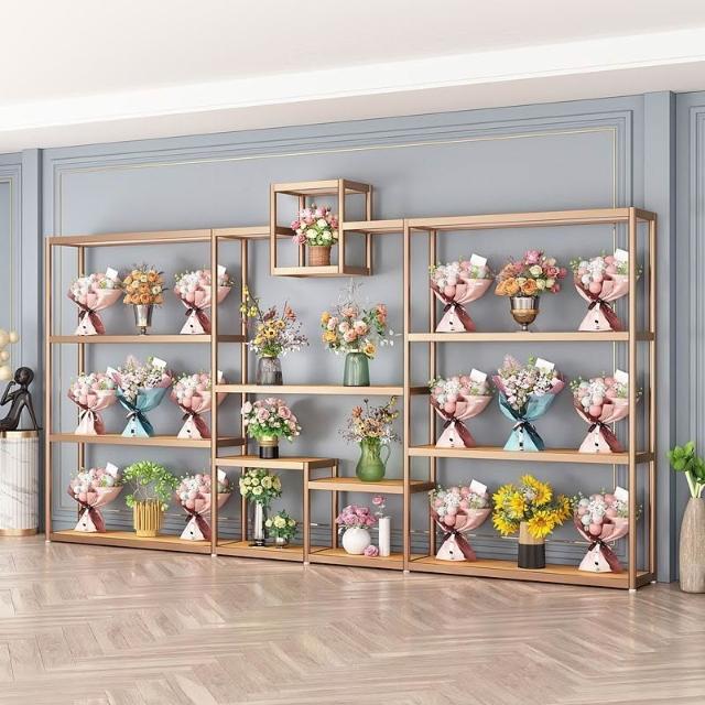 未晚家居館 花店鮮花展示架花束架子花盆禮盒花籃工藝品陳列架多層花店展示架花架
